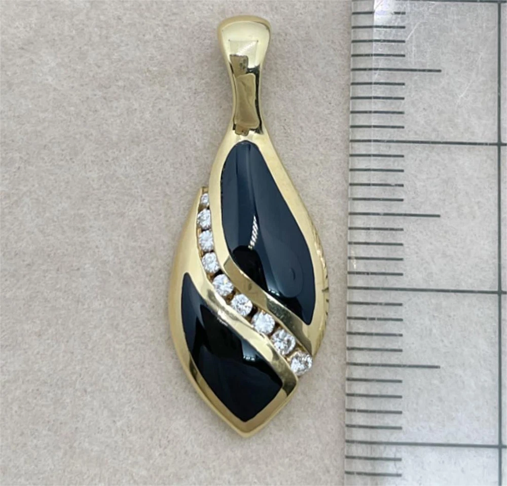 UPC: Does not apply Brand: Kabana Type: Pendant Top gtin13: Does not apply Metal: Yellow Gold Secondary Stone: Chalcedony Main Stone: Diamond Style: Pendant Top Metal Purity: 18k Seller Notes: “Chalcedony & diamond necklace top. *Chain not included.” MPN: Does not apply