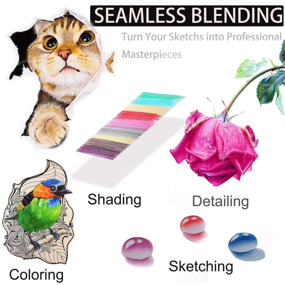 KALOUR180 Color Pencils for adult coloring 180 Colored Pencil(with no. and color name on pencil body). Each pencil inside is equipped with high quality cores and provide excellent color blending, it is perfect for expressing art presentations. Perfect for coloring & drawing etc. Good for both office or school, great not just for beginner but also for artist. BENEFITS & FEATURES: 180 Pre-Sharpened Pencils 3.0mm core Non-Toxic Conforms to ASTM D-4236 and EN71 Standards Premium Wooden High-Quality Pigments Deliver Rich Color Named, Numbered and Color Coated Soft and Thick Wax Based Leads Great for Adult Coloring Books Smooth Blending & Shading Soft break-resistant cores produce incredible tone, perfect for blending and layering multiple colors. Rich Pencil Type and Vivid Colors, this kit contains 180 colors Soft Core, which lay down smoothly and creamly like a butter, with widest selection of vivid, vibrant colors in this set complete with numbered indentification making it super easy to pick up where you left off. Rich, vibrant, non-toxic, fade-resistant colors. Excellent Blending & Shading Qualities that will take your artwork to a new level. These pencils will blend well with other premiere brans too, adding real value to your overall art supplies. VIVID VIBRANT COLOR: Kalour colored pencil set contains 180 professional colored pencils. You can find any color you need in these 180 unique colors to enrich your coloring book. Premium color pencils gift for artists beginners kids adults. RICH PIGMENTS: The silky smooth,velvety soft core lay down vivid color.colored core are rich pigments, Perfect for coloring & drawing etc. break-resistant cores produce incredible tone, perfect for blending and layering multiple colors. PREMIUM COLORED PENCILS: Kalour Each pencil body has a unique number and color name for easy color identification.color pencil is made of high-quality basswood, which is very easy to sharpen. Conforms to U.S. ASTM D-4236 & EN71-3.non-toxic safe. COLORING: Colors always cheer people up, stimulate their creativity and imagination. People color in their leisure time for stress-releasing, abundant colors brighten your works and life, and bring coloring much fun. PORTABLE CASE: The colored pencils are placed in a beautiful tin box, and the plastic built-in tray to keep pencils organized and protected.Perfect gift for adults kids