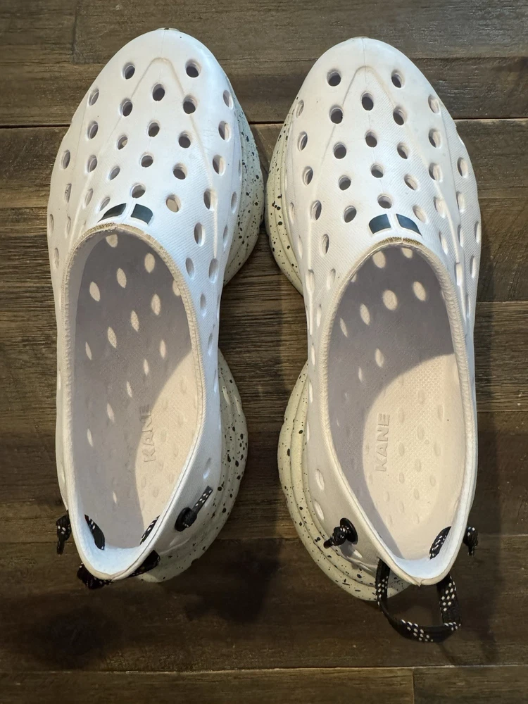 Great condition, no box included. A transformative, sustainably designed injection-molded shoe for active recovery. Washable. Quick-drying. Ultra durable. •Made in Brazil from sugarcane-based EVA foam •KANE Revive shoes are made of bio-based closed-cell RestoreFoam™. The shoes don’t absorb moisture, so they’re just as functional in water as they are on land, and they’re quick-drying. •KANE Footwear is easy to clean. KANEs can easily be wiped or washed off with soap and water and are also machine washable at low temperatures (use cold water setting only).