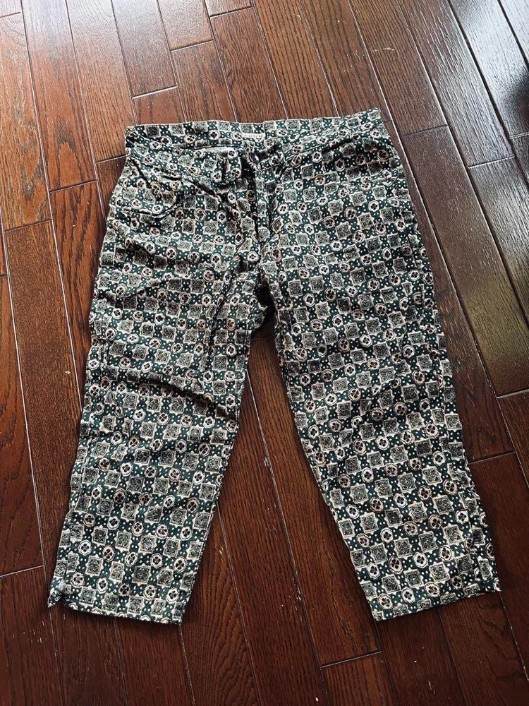 Type: Pants UPC: Does not apply Rise: NA Color: Multicolor Waist Size: 29.1 in Size Type: Regular Personalize: No Fit: Slim Season: Fall, Spring, Summer Fabric Type: NA Accents: NA Country/Region of Manufacture: Japan Inseam: 16.5 in Style: Capri Leg Style: Straight Handmade: No Garment Care: NA gtin13: Does not apply Features: Pockets Vintage: No Occasion: Business, Casual, Travel Pattern: Geometric Brand: KAPITAL Model: NA Material: Linen Closure: Button Department: Women MPN: NA Theme: NA Size: 1