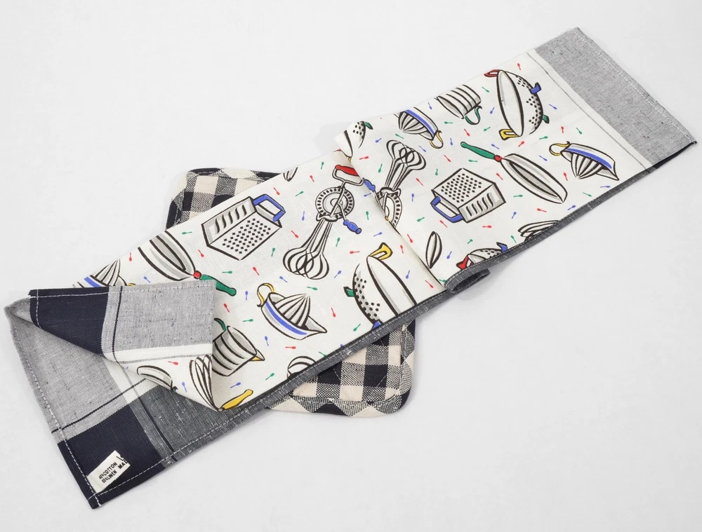 DESCRIPTION: Fun black and white linen and cotton blend, Kay Dee tea towel and potholder set. The pattern has a fabulous design with old time kitchen gadgets, and a splash of color. SIZE/WEIGHT: About 27" x 18.5" on the towel. Weighs 4.25 oz. CONDITION: Excellent like new and still attached, with no stains or age spots, never used. Terms Seller will combine multiple purchases - buyer must request a final invoice, and make one single payment for all items at once. Purchases must fall within a 7 day period, and all items must be able to ship in the same package. All questions to be resolved prior to bidding or making any purchases. Payment is due within 7 calendar days of the date of sale. Return policy and payment instructions can be found below on this page. Please use the shipping calculator on this page. This is a shipping-only item and is not available for in-person pickup. Delivery confirmation is automatically included on all domestic United States shipments at no additional charge, when allowed by US Postal guidelines. International Buyers - Please Note Import duties, taxes and charges are not included in the item price or shipping charges. These charges are the buyer's responsibility. Please check with your country's customs office to determine what these additional costs will be prior to bidding/buying. These charges are normally collected by the delivering freight (shipping) company or when you pick the item up - do not confuse them for additional shipping charges. We do not mark merchandise values below value or mark items as "gifts" - US and International government regulations prohibit such behavior. Powered by SixBit's eCommerce Solution