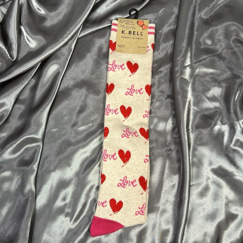 K.BELL Love Red Hearts Over The Knee Novelty Socks Unisex Shoe Size 4-10 Oatmeal HTR New with tags Perfect Gift for Valentines, Birthday, Christmas, Hanukkah, Wedding, School Questions? Want more pics? Send a DM 🙂 📬 Ships same day or within 24/hrs! 🥳