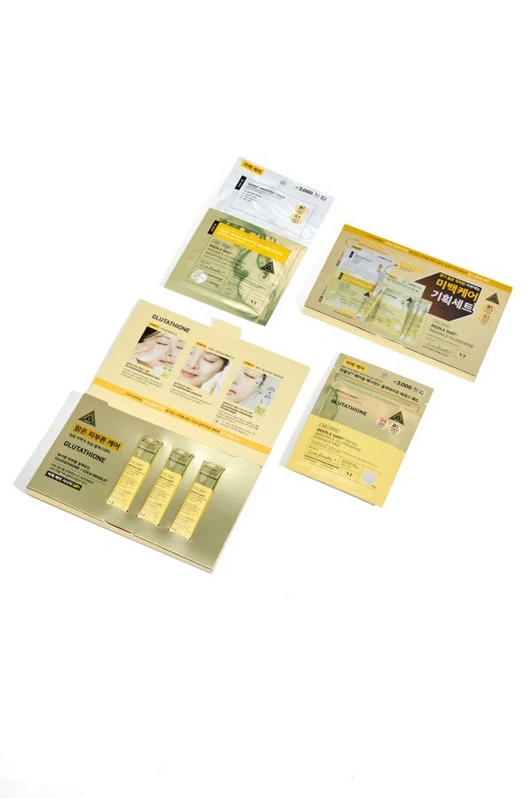 You can write a product description for the VT Radiance Glutacion Whitening Care Set as follows: Product Description: The VT Radiance Glutathione Whitening Care Set is a whitening care set that evenly improves skin tone and leaves bright and transparent skin. The Glutathione ingredient brightens the skin and suppresses excessive melanin production, providing a whitening effect. This set improves the natural tone of the skin and helps to create an even and radiant skin. Product Features: Glutacion: It has a strong antioxidant and whitening effect to brighten and clear skin. Improving skin tone: It removes dullness from the skin and makes it bright and bright. Moisturizing & nourishing: Prevent dryness and keep skin moisturized by providing sufficient moisture to the skin. Set of 5: Cleanser, toner, serum, cream and mask are included for complete whitening care. Suitable for all skin types: It is a hypoallergenic product that can be used on sensitive skin. Set Configuration: VT Radiance Glutacion Cleanser (100 ml) VT Radiance Glutacion Toner (100 ml) VT Radiance Glutathione Serum (50 ml) VT Radiance Glutacion Cream (50 ml) VT Radiance Glutacion Mask (1 sheet) How to use: Cleanse your face with a cleanser. After you clean up your skin with toner, Apply a serum to provide intensive whitening and nutrition to the skin. It gently finishes the skin with a cream to lock in moisture and nutrition. Finally, the mask provides intensive whitening and moisturizing effects on the skin. Product status: Brand new product, same as original packaging Key ingredients: glutathione, vitamin C, hyaluronic acid, plant extract Skin Type: All skin types, especially those requiring whitening [Delivery and Return Policy] Shipping Information: Available for worldwide shipping (in case of international shipping, shipping and customs clearance will be borne by the buyer) Delivery Method: Tracking Delivery Service (e.g., DHL, FedEx, etc.) Estimated delivery period: 7-25 business days after purchase (depending on region) Return and Refund: Returns are possible if they are not used or damaged within 30 days of receiving the product