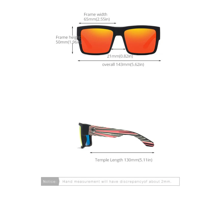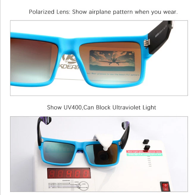 KDEAM Square Polarized Sport Sunglasses Men Women Driving Fishing Glasses New Description Brand: KDEAM Condition: New without Tags Frame Material : Plastic Lens Material: TAC Anti-UV rating: UV400 Whether polarized : Yes. Gender: Men/Women Lens width: about 65 mm Lens height: about 50 mm Bridge: about 21 mm Frame Width: about 143 mm Temple Length : about 130 mm Package included: 1*Sunglasses(Not include boxes and other accessories) Note: 1. Due to the different monitor and light effect, the actual color of the item might be slightly different from the color showed on the pictures. Thank you! 2. Please allow 1-3mm measuring deviation due to manual measurement. Features Reflective UV Protection UV400 MPN Does Not Apply Department Unisex Adults Frame Color Multicolor Frame Material Plastic Country/Region of Manufacture China Model KD093 Temple Length 130 mm Brand KDEAM Lens Material Mirror, TAC Style Square Personalized No Lens Technology Polarized Theme Classic, Designer, Logo, Outdoor, Sports Type Sunglasses