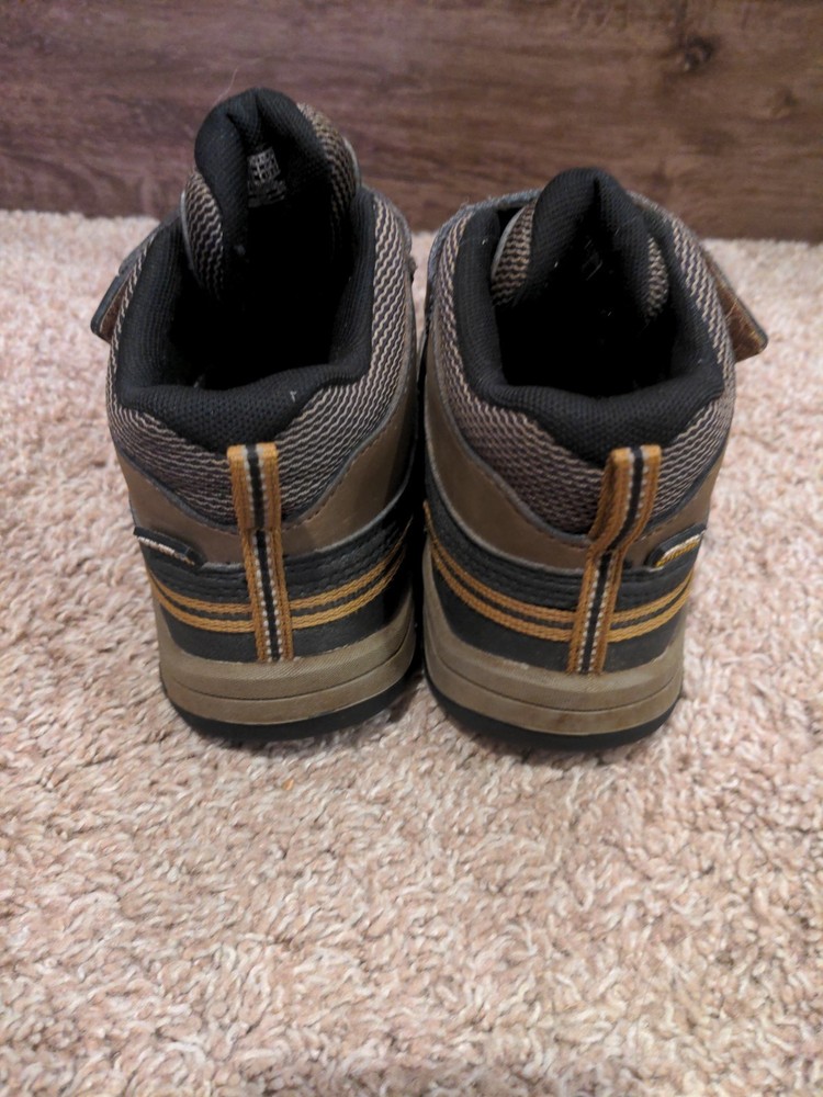 KEEN kids size 13 brown and black hiking boots. Practically new with almost no wear. Velcro strap to secure drawstring Bungie tie for stress free dressing. Waterproof! Smoke free home.