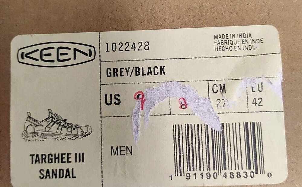 KEEN Targhee III Hiking Sandals Men's 9M - Gray/Black Explore every inch of the great outdoors in the KEEN® Targhee III Hiking Sandals for Men. Waterproof leather-strap uppers and quick-dry linings mean you can venture off trail with complete confidence. Plus, EVA midsoles and footbeds cushion and support feet over tough terrain. Built-in arch support for additional comfort. Non-marking KEEN.ALL-TERRAIN rubber outsoles with multidirectional lug patterns keep you surefooted as you blaze your own trail. The KEEN Targhee III Hiking Sandals for Men combine the performance of your favorite hikers with the warm-weather comfort of sandals. Imported. Manufacturer style #: 1022428. Waterproof leather-strap uppers with quick-dry linings EVA midsoles and footbeds cushion and support Built-in arch support for enhanced comfort Non-marking KEEN.ALL-TERRAIN rubber outsoles Multidirectional lug patterns for sure traction