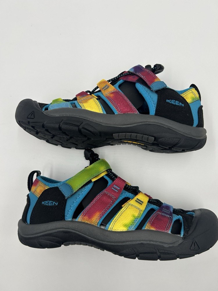 Step into colorful adventure with these KEEN Newport H@ Youth Sabndals inn a fun Rainbow Tie Dye design. These water-friendly sandals are perfect for outdoor play hiking or everyday wear. Designed with durability and comfort in mind, they feature: A quick-dry webbing upper in vibrant multicolor, closed toe protection, secure fit lace capture system with adjustable hook-and-loop strap, non-marking rubber outsole with multi-directional traction.Youth US 4 never worn without tags soles show no signs of use. Ideal for summer camp, the lake, trails, or everyday fun-these are a favorite among active kids and parents alike. Att D