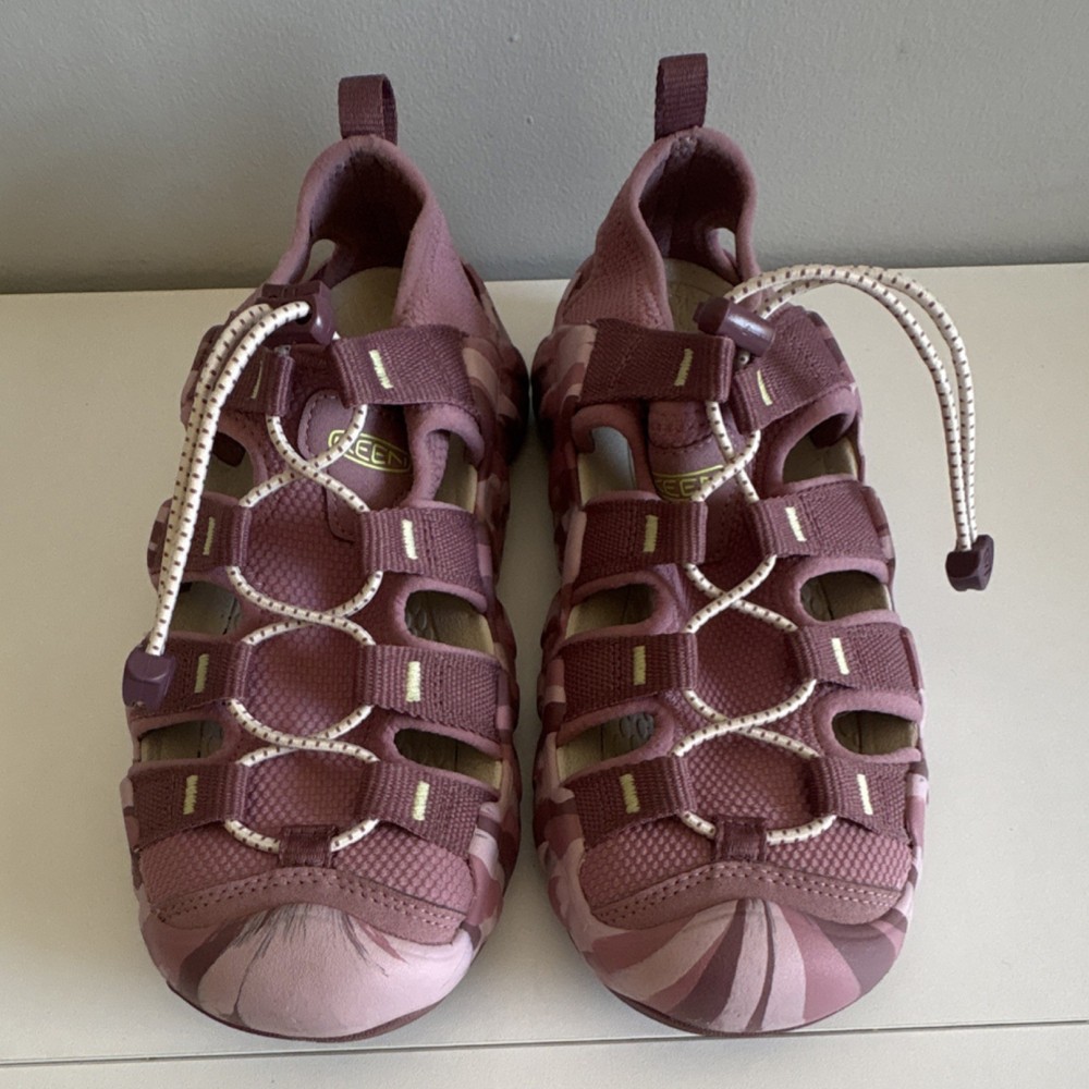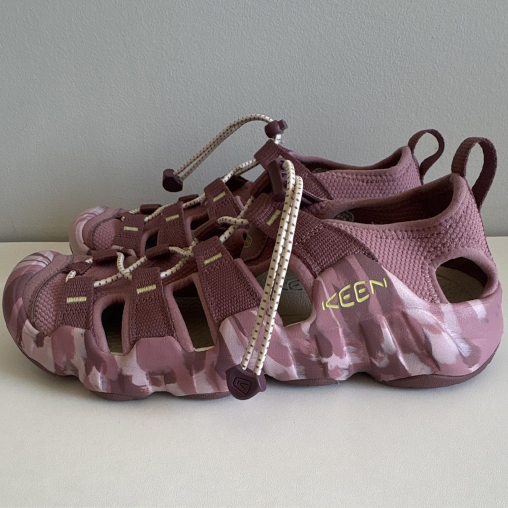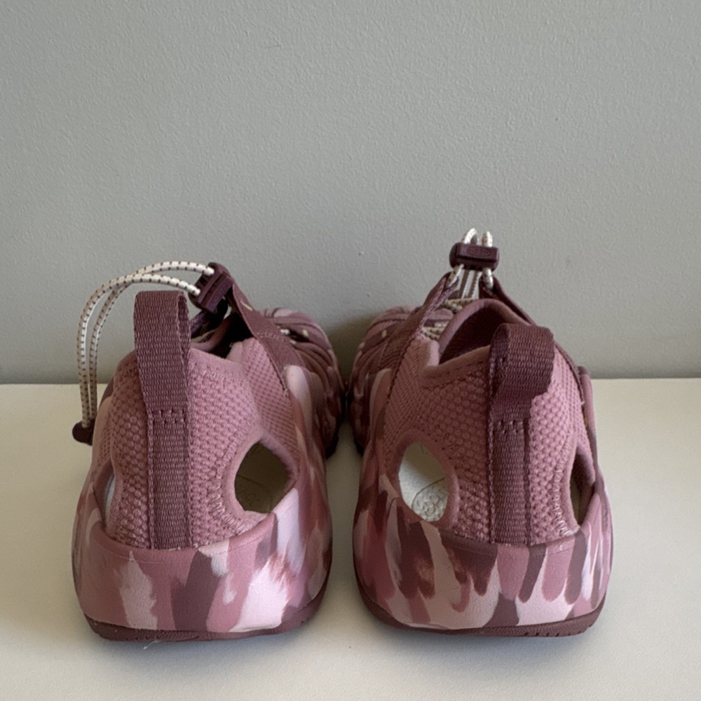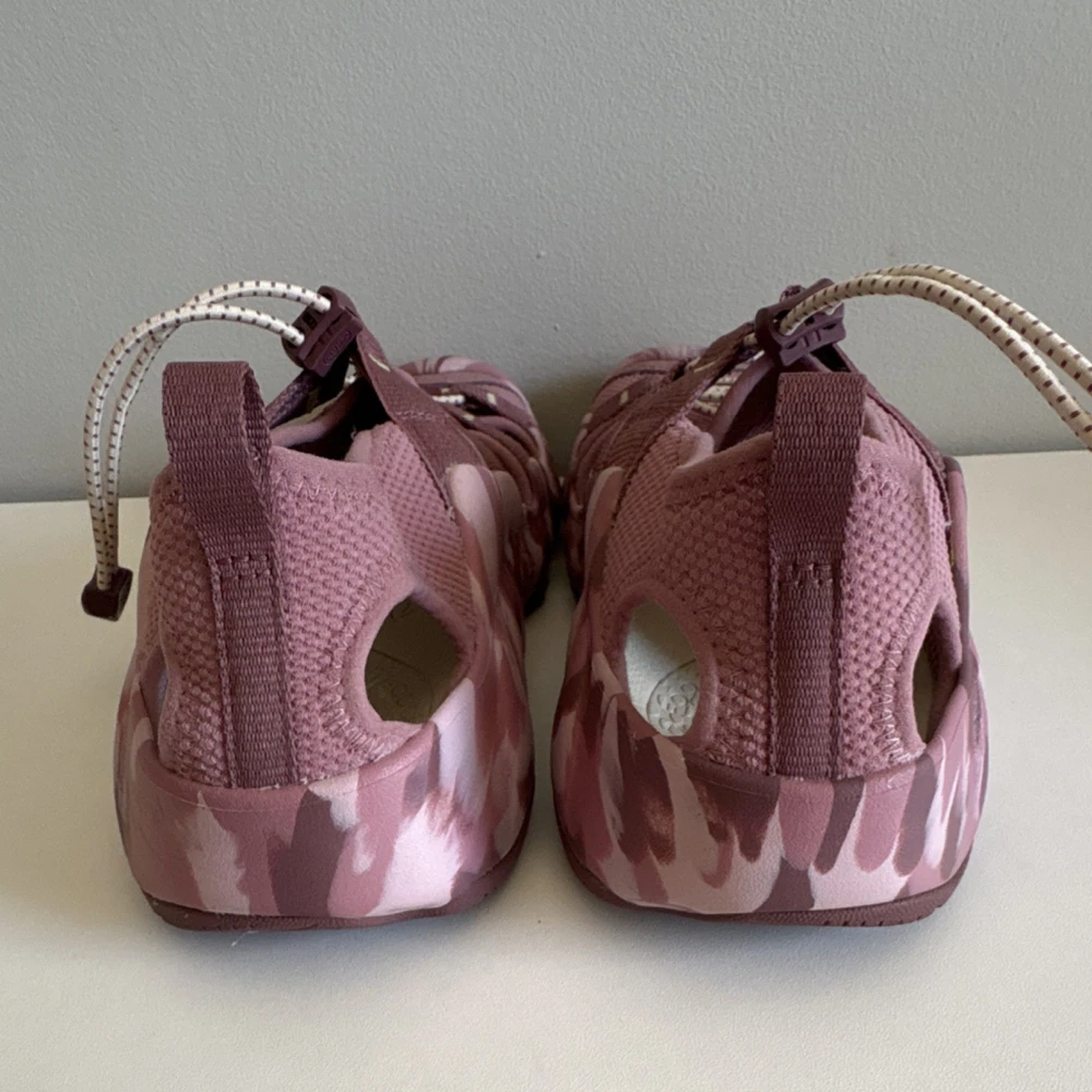 Comfortable and durable KEEN fisherman-style sandals featuring a unique pink marbled pattern and adjustable drawstring closure. Perfect for spring and summer wear, water activities, travel, hiking, or casual everyday use. Details: • Women’s size 8.5 • Color: Pink / Beige camo/marble • Adjustable drawstring toggle closure • Closed-toe fisherman style • Rugged outsole for traction • Great for water, hiking, or casual wear Condition: Excellent pre-owned condition.