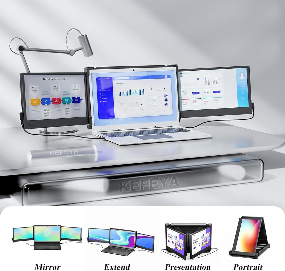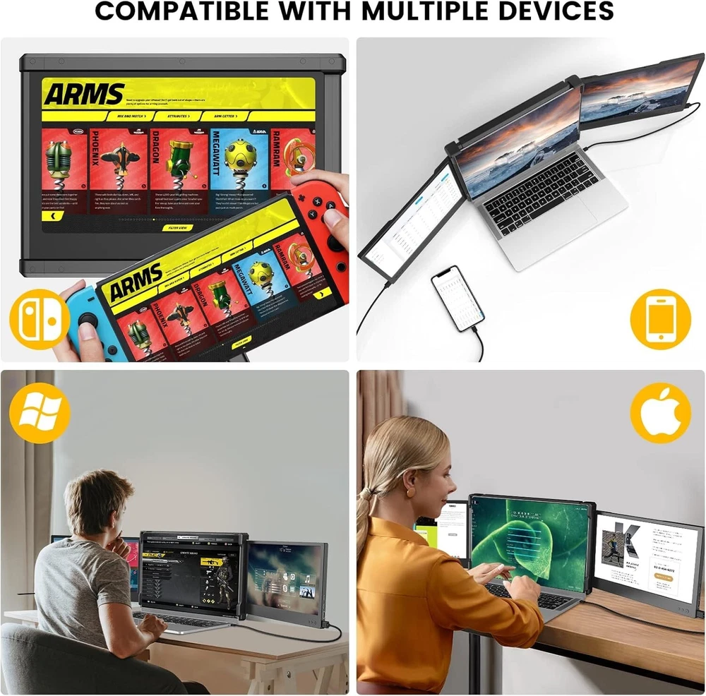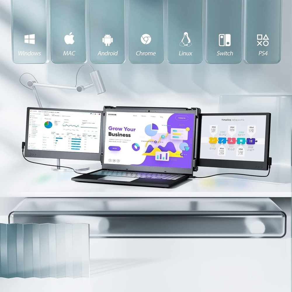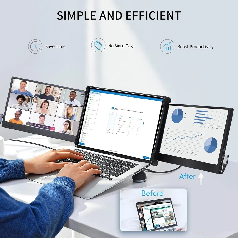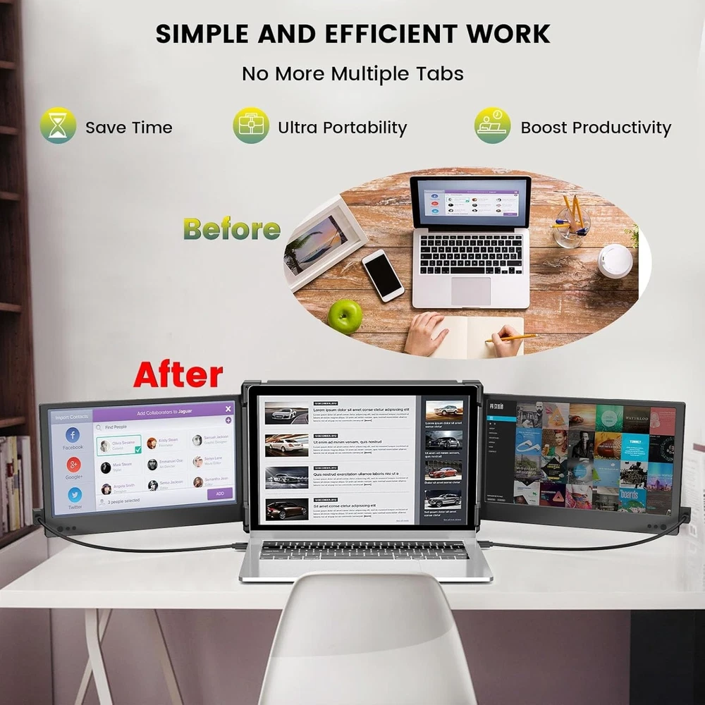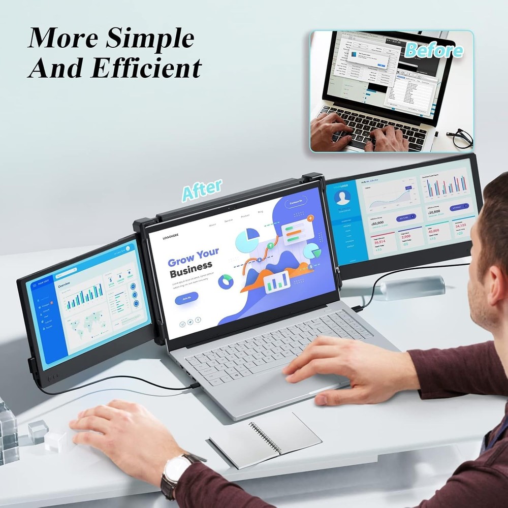 Laptop Screen Extender,15.6" FHD 1080P IPS Triple Screen Laptop Monitor Extender