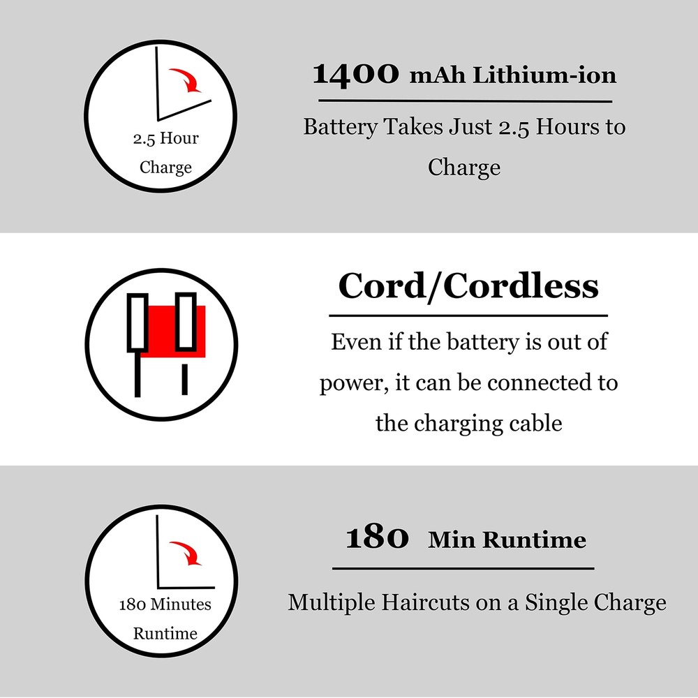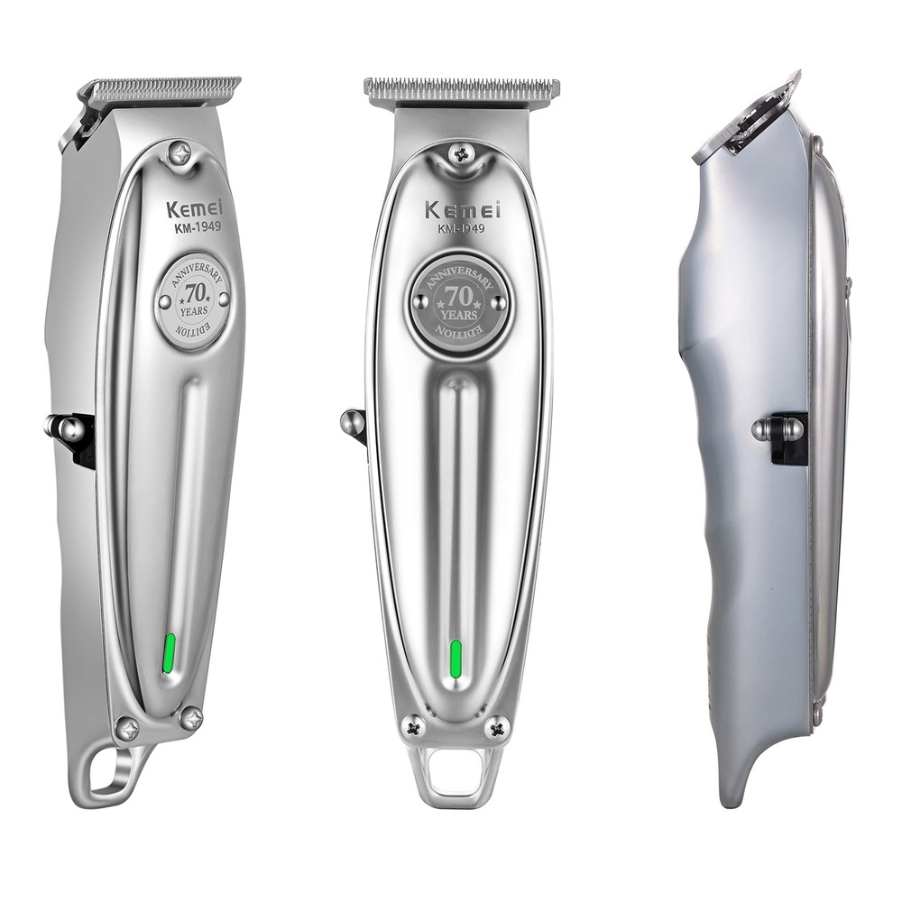 KEMEI Professional Beard and Hair Trimmer for Men, Cordless T-Blade Trimmers, Electric Hair Clippers for Barbers and Stylists, All Body Grooming Model 1949 Product Details Color: Km-19499-silvery Brand: KEMEI MPN: 1949-sliver UPC: Does not apply EAN: Does not apply Brand: KEMEI Model Name: KM-1949 Charging Time: 1.5 Hours Battery Description: Lithium-Ion Included Components: USB Charge Cable, Cleaning Brush, Trimmer, 3 Guard Comb, Protect Cap Product Dimensions : 1.81 x 1.57 x 6.3 inches; 7.83 ounces Item model number : 1949-sliver Batteries : 1 AAA batteries required. (included) Date First Available : February 27, 2020 Manufacturer : KEMEI Country of Origin : China Professional Men's Hair Trimmer: The T-blade trimmer is a game-changer for grooming enthusiasts who seek crisp, clean lines and exact edges with sharp precision, without any snag or pulling. It's versatile enough to tackle all hair types on the head, beard, body, mustache, and beyond, leaving you with sharp edges and a smooth finish Powerful Motor & Strong Carbon Blades: The KM 1949 zero gap trimmer is a top-quality grooming tool with a high-torque rotary motor that delivers power and efficiency while minimizing noise. Its adjustable T-wide blade ensures long-term sharpness, precise cuts. With a speed range of 6400-6900 RPM, it's a great choice for precise grooming Smart Battery Indicator: The barber hair trimmer is powered by a 1400 mAh battery that provides 180 minutes of runtime on a full charge. Plus, the trimmer features a battery status indicator, so you'll always know how much power you have left. Whether you're a professional stylist or just looking to maintain your personal style, this hair clipper is sure to meet your needs Ergonomic Design & Cordless: The hair clippers' ergonomic design ensures a comfortable and secure grip. Whether you prefer corded or cordless, this trimmer has you covered. Its cordless design provides ultimate convenience and freedom of movement, while the corded option ensures constant power for uninterrupted grooming sessions Product Details: For your ultimate convenience, the Kemei clipper comes with 9 accessories to enhance your grooming experience. The package includes the clipper, 3 attachment combs, a cleaning brush, easy-to-follow instructions, a black blade guard, a plastic comb, a USB charging cable Product Reliability & Choice: We provide 1 year. With its sleek and stylish design, it makes for a thoughtful and practical choice for anyone in your life who cares about looking their best