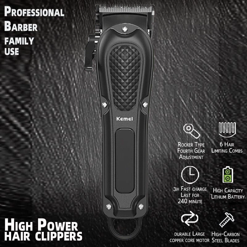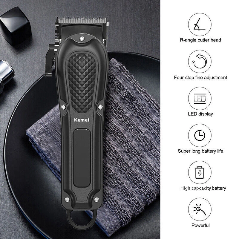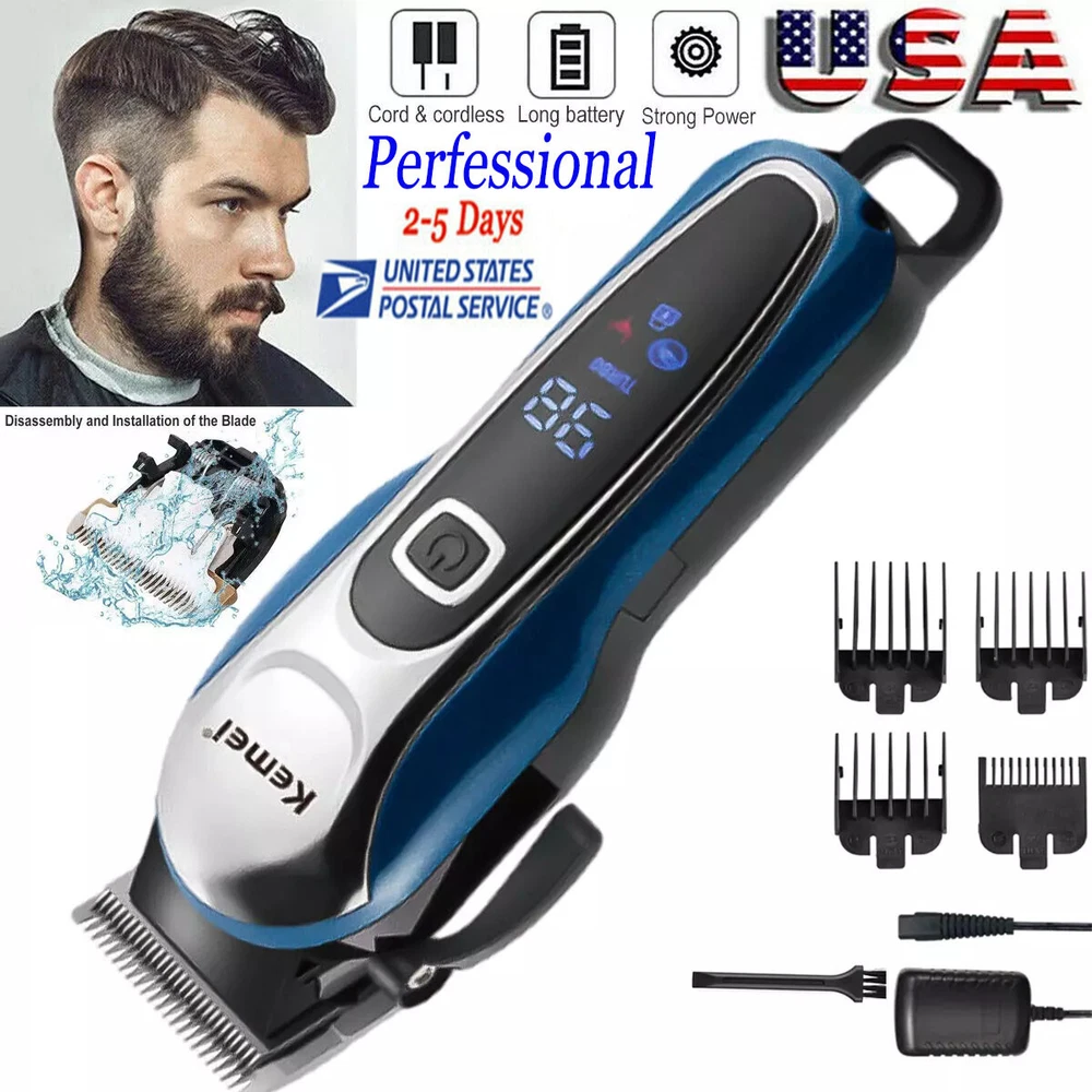 Kemei Professional Hair Clippers Cordless Trimmer Beard Cutting Machine Barber Item Description 2025 NEW Kemei Hair Clippers Trimmer Kit Men Professional Cutting Machine Barber Salon US FEATURES: COMPLETE HOME HAIR GROOMING KIT - Personal care hair trimmer with four attachment clipping comb,cleaning brush and charging adapter in a packing box to keep it all organized. It has everything you need for a quality haircut and a great styling kit for men for a hassle-free grooming experience at home or on the go CORDLESS HAIR TRIMMER with LED DISPLAY - Features a smart LED display, which clearly shows battery power in percent, charge indicator and lubrication reminders that helps get the job done even quicker. You can control the usage time according to remaining battery life. PRECISE LENGTH CONTROL - The product is equipped with a 0.5mm-2.0mm stepless adjustment device and 4 standard length limit combs respectively 3/6/9/12mm.SELF-SHARP STAINLESS STEEL BLADE to cut any hair type neatly and effectively without snagging, pulling or pinching RECHARGEABLE LONG BATTERY LIFE - Easy to use handy shaving sets that provides up to 3 hours of running time after 3 hours of charging. 100 - 240 worldwide voltage making an ideal choice for travel and business trips. It comes equipped with a long-lasting 2000mAh lithium battery that can be charged anytime, anywhere. ERGONOMIC DESIGN - Compact and lightweight, this wireless hair clipper that measures 7.28x 2.36 x 1.96 inches boasts an ergonomic design for easy maneuvering and optimal control that helps you to avoid hand, wrist, and arm fatigue during a busy day SPECIFICATION: Input Voltage: AC 100-240V 50/60Hz Power: 5W Charging time: 3hours, Useing time: 120min Color:Golden PACKAGE LIST: 1*Machine 1*Adapter 4/6/10 Auxiliary comb 1*Hair brush 1*comb 1*Manual 1* Lubrication oil Warm Tips Please apply oil to lubricate the head to improve the hair clippers' efficiency and maintain its performance. The hair clipper set is driven by motor power so working sounds below 60 decibels are normal, and do not worry about safety. The hair trimmer will become hot after continuous use for more than ten minutes, but it does not exceed 122 degrees Fahrenheit and is safe. Detail Images Shipment All item will be carefully packaged very well with safe material and shipped to US States. Items will be sent in 1 working days,usually shipped by USPS Priority Mail. It will take about 3-5 days to US addresses. If you would like to ship by other shipment methods,please contact us.( shipping cost will be combined for multiple items you purchase at a time.) Payment Only PayPal is acceptable.It is a safe and easy payment method for buyers. Please pay in 48 hours after you win the item(s).If payment cannot be made in five days,your order(s) will be claimed as unpaid case and the item will be relisted. Return & Refund Customer satisfaction is our first priority. 30-days return is available after delivery. However, return shipping and insurance cost will be on buyers. Please email us before returning. Delivery date will be different according to UPS or USPS tracking system, so please inspect your item immediately upon arrival. Money will be return to you after the return item is sent back. We can not refund to you, if your return item is broken or damaged. Please ensure its safety. Feedback Your feedback is very important to us. If you can't leave us a "5-Star" rating and a positive feedback, please contact us without hesitation before leaving feedback. We are eager to work with our customers. We believe in communication. Give us a call or send us an email, we will make things right for our buyers. Positive feedback for our buyers will be left automatically by eBay Seller Manager Pro.