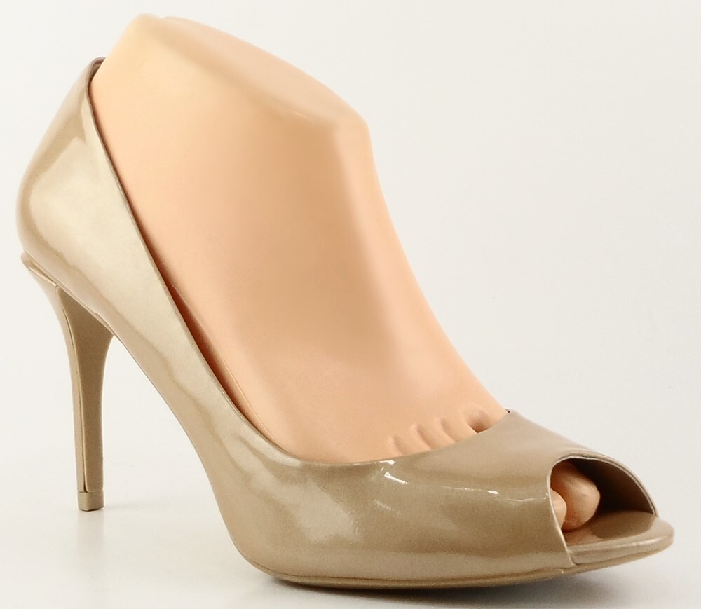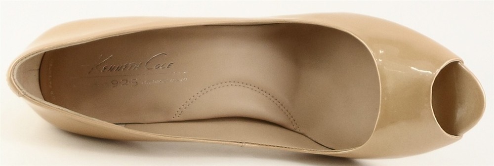 New/ clearance in original box Shiny patent leather upper; Leather lining; Man-made sole Covered heel measures 3 3/4" * Open toe Lightly padded footbed *Measurements are hand taken for every item we sell. Every item is carefully inspected to ensure that you receive a quality product. Designer Shoe Box guarantees this product is 100% Authentic