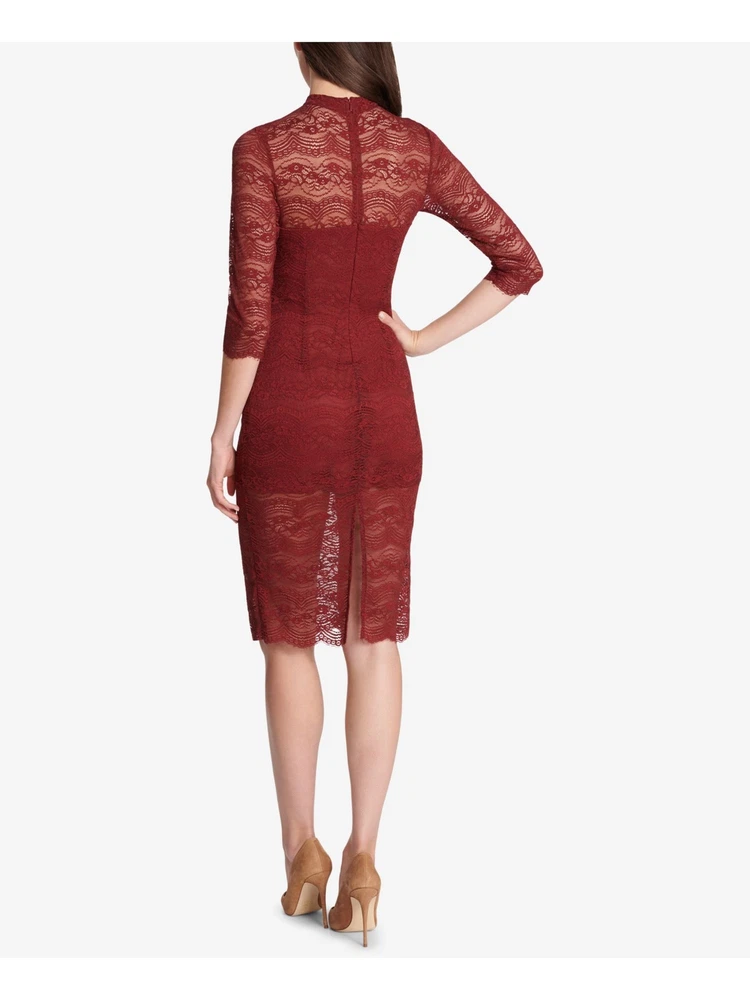 Vintage: No Style: Dress Color: Burgundy Fabric Type: Nylon Blend Pattern: Floral Size Type: Regular Occasion: Party/Cocktail Country/Region of Manufacture: Sri Lanka Brand: KENSIE Skirtdresslength: Knee Length Size: 4 Department: Women MPN: KDLN0323 Season: Fall, Winter, Spring, Summer UPC: 193629003085 Dress Length: Knee Length Personalize: No Sleeve Type: 3/4 Sleeve Sleeve Length: 3/4 Sleeve Neckline: Mock Neck Features: Zippered Sizetype: Regular gtin13: 193629003085 Skirtdressstyle: Body Con Material: Nylon Blend