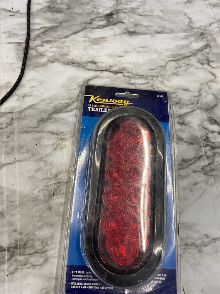 The KENWAY 10 LED Red Submersible Boat Trailer Taillight is a rear tail light assembly designed for trailers. It features 10 LED bulbs with a wattage of 12W, housed in a black casing with a red lens color. This DOT-certified taillight has a C5W bulb shape code and utilizes LED lighting technology, providing a bright and efficient light for optimal visibility.