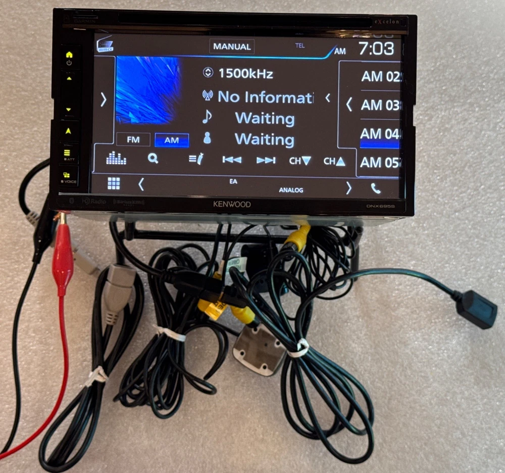 KENWOOD DNX695S DVD Receiver Bluetooth Car Audio Apple Android Play Radio Usb USED IN GOOD WORKING CONDITION WITH SOME LIGHT SCRATCHES FROM NORMAL USE. I DO NOT HAVE THE REMOTE CONTROL MOUNTING SLEEVE OR TRIM PLATE FOR THIS ITEAM, IF YOU HAVE ANY QUESTIONS ABOUT THIS UNIT FEEL FREE TO ASK . NO INTERNATIONAL SHIPPING I WILL SHIP TO USA ONLY.
