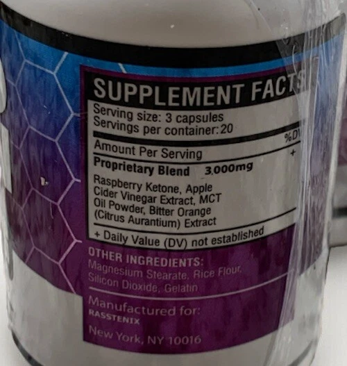 UPC:DOES NOT APPLYMain Purpose:Weight Loss, Weight ManagementCountry/Region of Manufacture:United StatesFlavor:UnflavoredDepartment:Men, Unisex, WomenDosage:3 CAPSULESgtin13:DOES NOT APPLYNumber of Pills:2 X 60=120 CAPSULEBrand:RASSTENIXWhen to Take:After Meal, Afternoon, Before Meal, MorningMPN:N/AActive Ingredients:BLENDExpiration Date:03/2025Type of Diet:KetoFeatures:Gluten-FreeFormulation:CapsuleType:SupplementIngredients:BLENDSupply:1 Month and Longer