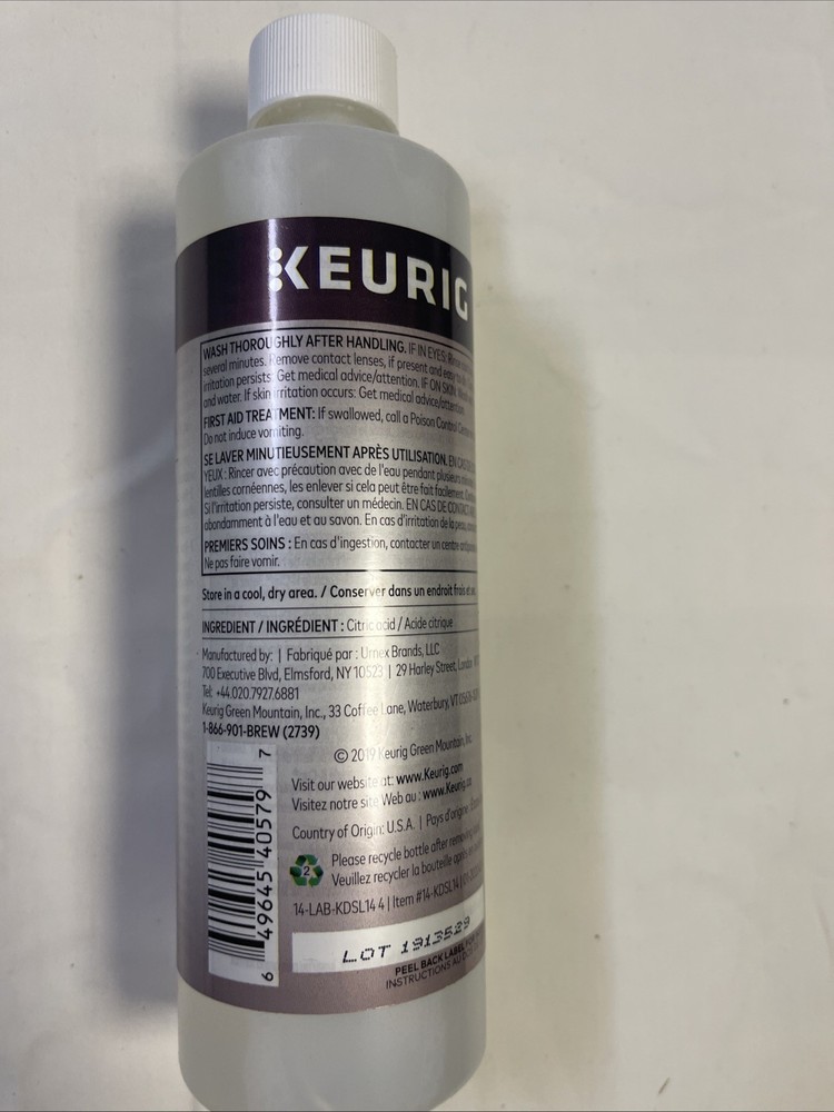 The KEURIG Descaling Solution is a 14 fl oz (400 ml) descaling fluid specifically designed for Keurig coffee makers. This clear solution comes in a pack of one and is easy to clean. It is compatible with various Keurig models, ensuring a hassle-free decaling process for maintaining the efficiency and longevity of your coffee maker. Keep your Keurig in top working condition with this convenient and effective descaling solution. To be used every 3 months