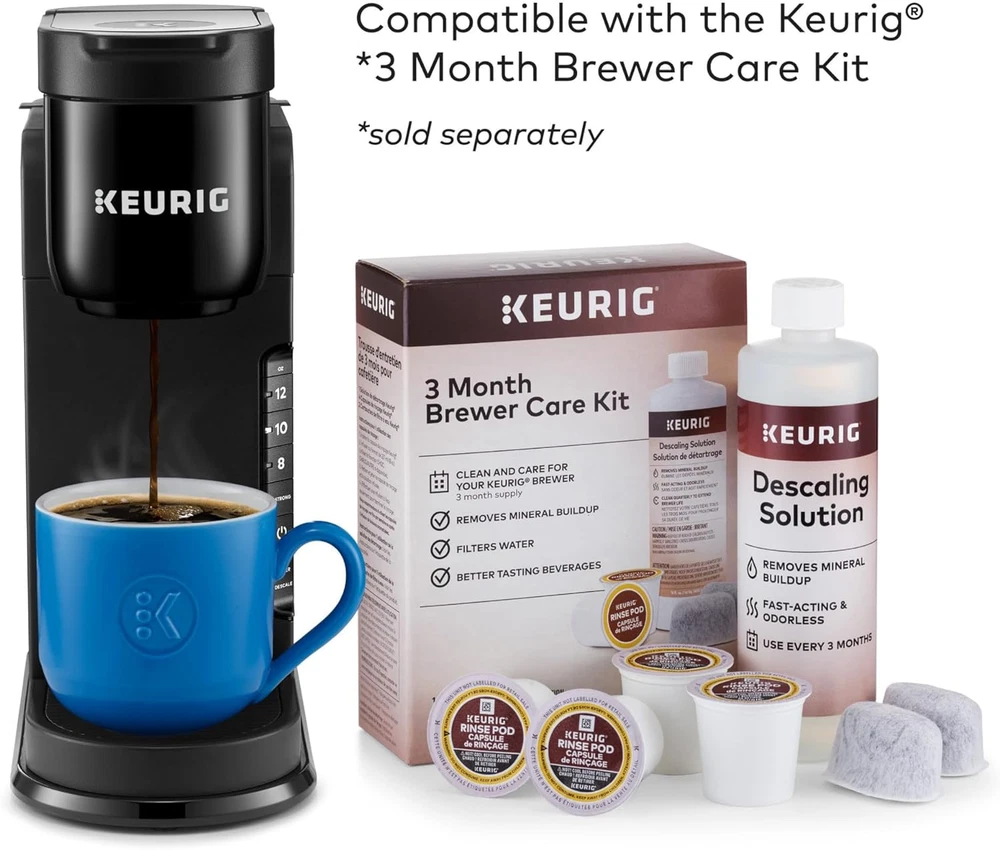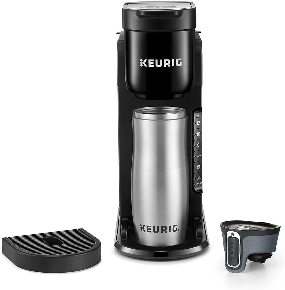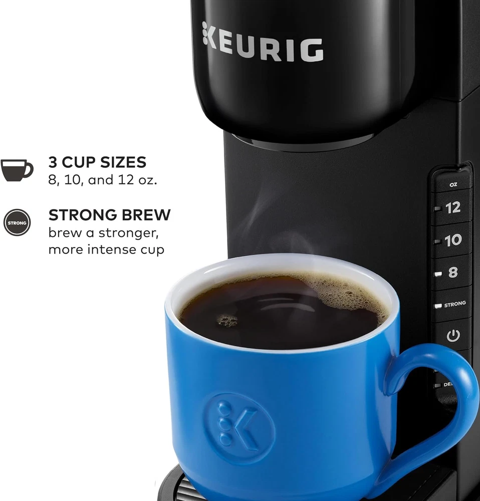 STRONG BREW: Increases the strength and bold taste of your coffee’s flavor. 3 CUP SIZES: Brew an 8, 10, or 12 oz. cup at the push of a button. MULTIPLE CUP WATER RESERVOIR: 42oz. removable reservoir lets you brew up to 4 cups before refilling. 8 oz. cup size FAST & FRESH BREWED: Delicious coffee made in minutes. TRAVEL MUG FRIENDLY: Removable drip tray accommodates travel mugs up to 7.4” tall. ENERGY EFFICIENT: Auto off feature turns off your coffee maker 5 minutes after the last brew, helping to save energy. COMPATIBLE WITH THE MY K-CUP UNIVERSAL REUSABLE COFFEE FILTER: Brew your own ground coffee (sold separately). Welcome to Keurig quality, at our most welcoming price. Enjoy rich, full-flavored taste every time you brew with the Keurig K-Express Single Serve Coffee Maker. Whether you’re looking to start your morning strong or need the perfect afternoon pick-me-up, use the STRONG button for a bolder, more intense coffee taste. And speaking of bold – the sleek, modern design of the K-Express coffee maker makes a big impression in any kitchen. Enjoy an 8, 10, or 12oz. cup of your favorite beverages – all fast and freshly brewed in minutes at the touch of a button. The 42oz. removable reservoir lets you brew up to 4 cups* before refilling, and back-to-back brewing means you don’t have to wait for your brewer to reheat before brewing a second cup. Plus, you can choose your favorites from the hundreds of coffee brands and flavors available in K-Cup pods, including tea or hot cocoa. You can even use a My K-Cup Reusable Coffee Filter (sold separately) with your own favorite ground coffee. And all of this comes at a price that helps you put America’s #1 single serve coffee maker brand on your counter. *8 oz. cup size.