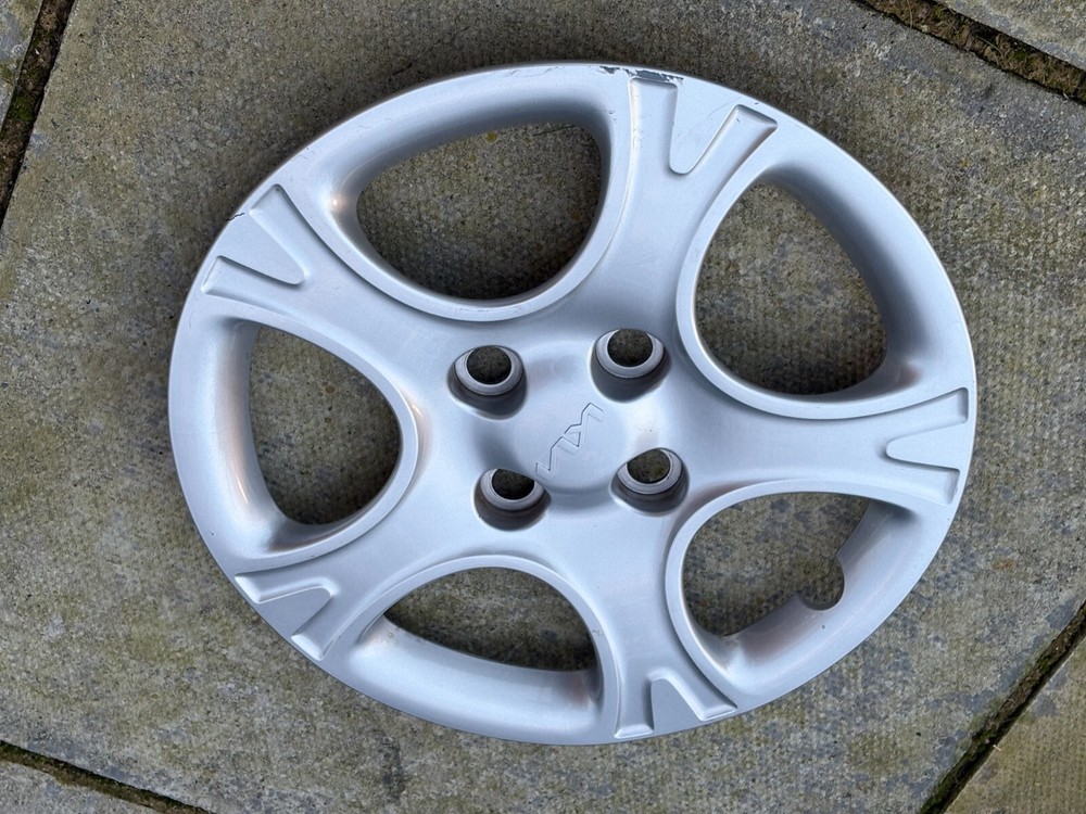 GENUINE 14'' KIA WHEEL TRIM X 1 BOLT ON TYPE HELD ON WITH WHEEL STUDS HAS ODD WEE TAR SPOT OVER IT FEW FAINT SCRATCHES EDGE OF FACE & LOWER PART OF 1 ARM FEW WEE SCRATCHES ON RAISED PART OF 2 ARMS TOWARDS EDGE (1 SIDE ONLY) 1 ARM HAS A HAS A FEW WEE SCRAPES/SCRATCHES TOWARDS EDGE + SCRAPED AT EDGE ODD WEE SCRATCH AT EDGE + SCRAPE (END OF ARM) AS SEEN IN PHOTO ANY QUESTIONS JUST ASK IS THIS THE RIGHT TRIM FOR YOU CHECK THE SIDE WALL OF YOU TYRE EXAMPLE 175X70 R14 ITS THE R NUMBER THAT GIVES YOU THE SIZE OF TRIM NEEDED 4 THIS ITEM WILL BE SENT ROYAL MAIL 2ND CLASS. THEY WILL BE WELL WRAPPED AND SECURELY PACKAGED. POSTAGE IS TO MAINLAND UK AND NORTHERN IRELAND ONLY - PLEASE CONTACT ME FOR ALL OTHER AREAS INC CHANNEL ISLANDS AND SCOTTISH ISLANDS & ISLE OF MAN RETURNED ITEMS ARE AT BUYERS COST