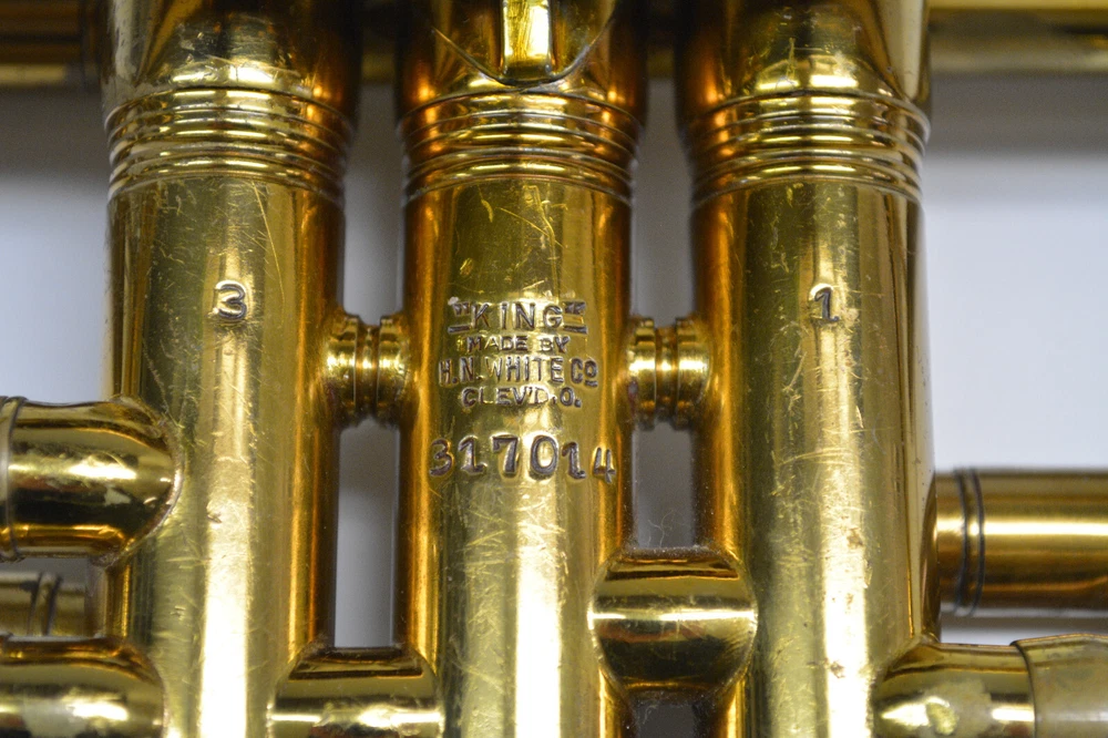Shipping listed is for the US 48 Contiguous States – we do not ship to Puerto Rico. If located in a US territory, APO/FPO, Alaska or Hawaii please contact for shipping charges as it will be more expensive to ship to your location. *INTERNATIONAL SHIPPING* We only ship through eBay's Global Shipping Program and to eligible countries. Up for sale is a Used King Liberty Trumpet – For Parts or Repair Serial #317014 All 3 valves are stamped with the serial number. Made by The H.N. White Co., Cleveland Ohio. We are selling this for parts in the used as is condition. Parts missing: 2 nd Valve Slide Finger Button Lyre Screw 1 draw knob Please refer to the photos. No case or mouthpiece. Check out our additional items located in our ebay store!