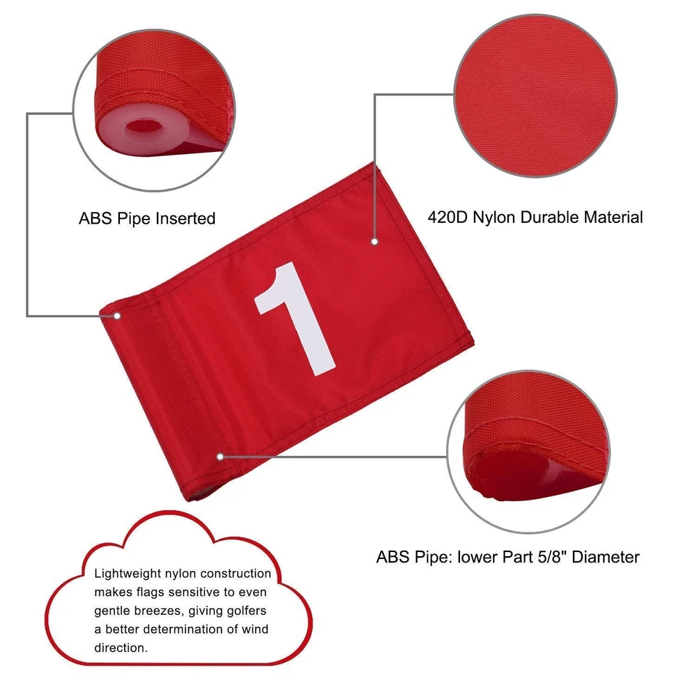 KINGTOP Golf Flagsticks Mini, Putting Green Flag for Yard, All 3 Feet, Golf Flagstick Set, Fiberglass Portable 2-Section Design, Numbered# 1-3 Product Details Theme: Sport, Golf Color: Green Brand: KINGTOP Recommended Uses For Product: Garden Occasion: putting green Material: Nylon Special Feature: Portable Specific Uses For Product: Outdoor Fabric Type: Nylon Target Audience: Golf Enthusiasts (Adults & Children) Brand Name: KINGTOP Color: Green Material: Nylon Style: 3 Pack Golf Flag with Flagpole Included Components: Pole Date First Available: November 17, 2020 Nylon UNIQUE- Compact 2 sections design being portable for indoor/ outdoor game. FLAG POLE- The standard base is compatible with your existing cup allowing not to take it out if you don't want to. MATERIAL- Fiberglass pole and 420D nylon numbers flag to ensure a long lifespan of the golf pin flags. Professional Design - Upgraded flag with Lightweight construction makes it sensitive to even gentle breezes, giving golfers a better determination of wind direction; APPLICATION- Turn your backyard into your own practice course with KINGTOP flagstick and hole cup set without ever leaving your own yard. Looking to improve your golf game from the convenience of your home? This golf hole flag helps you to better visualize distance as you practice in your backyard/ home garden!! They break down easily for quick storage or transport! It's the Best Golf Gift Ideas for Your Kids!