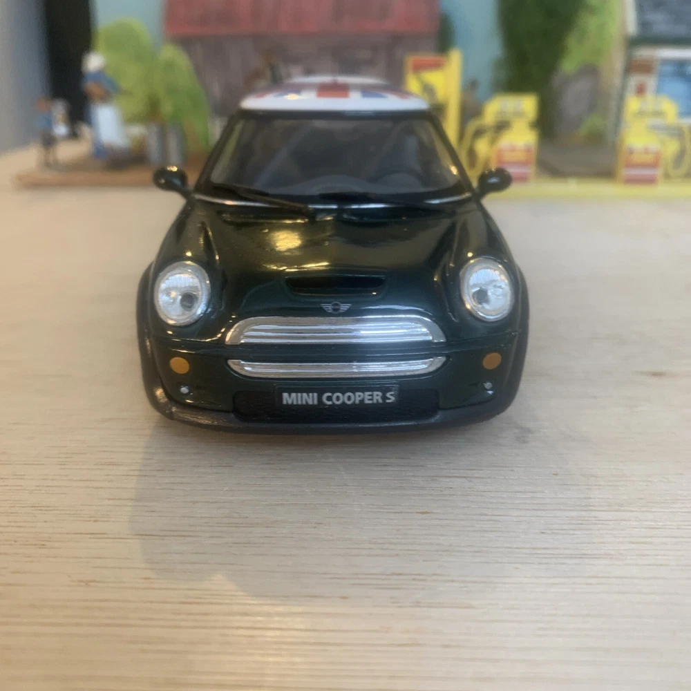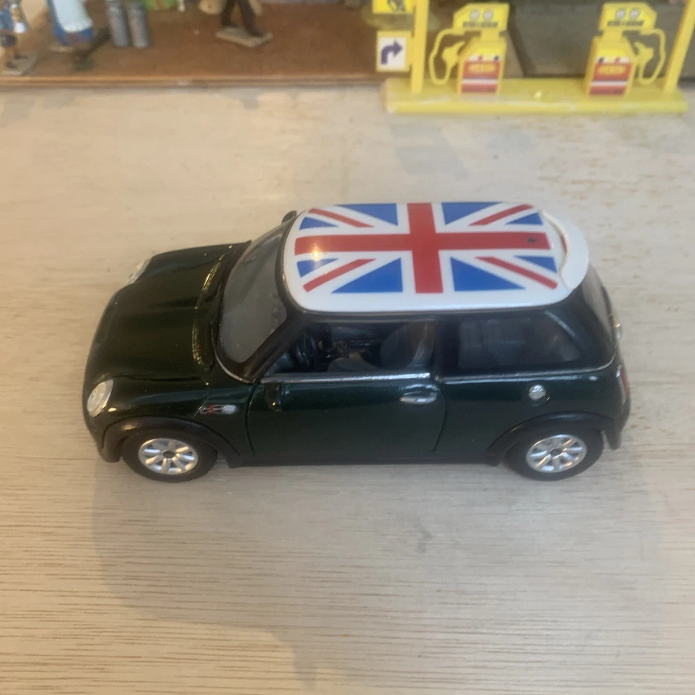 This Kinsmart Mini Cooper is a 1:28 scale diecast car made in China. It features a pull-back and go mechanism for added playability. As part of the Cars character family, this toy vehicle is a miniature version of the popular Mini Cooper model. The excellent condition ensures a high-quality collectible or play item for enthusiasts of diecast cars.