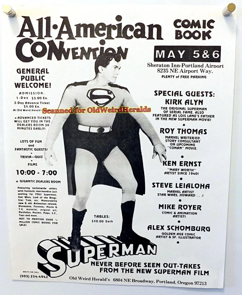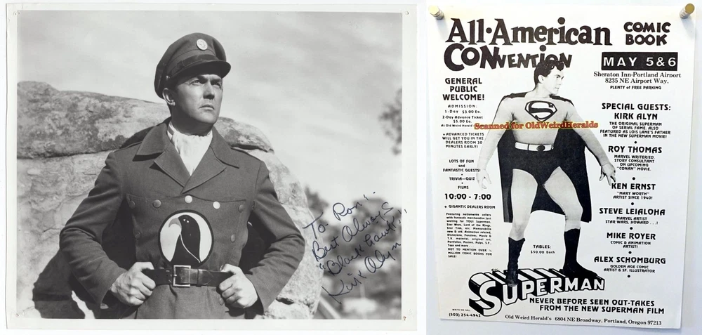 KIRK ALYN SIGNED PHOTO, BLACKHAWK 1940s Movie SERIAL + 1978 Event Flyer SUPERMAN