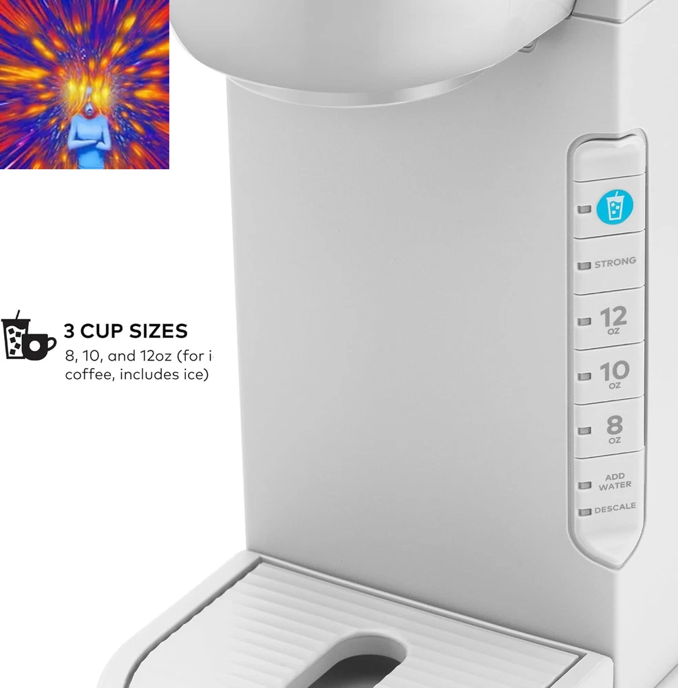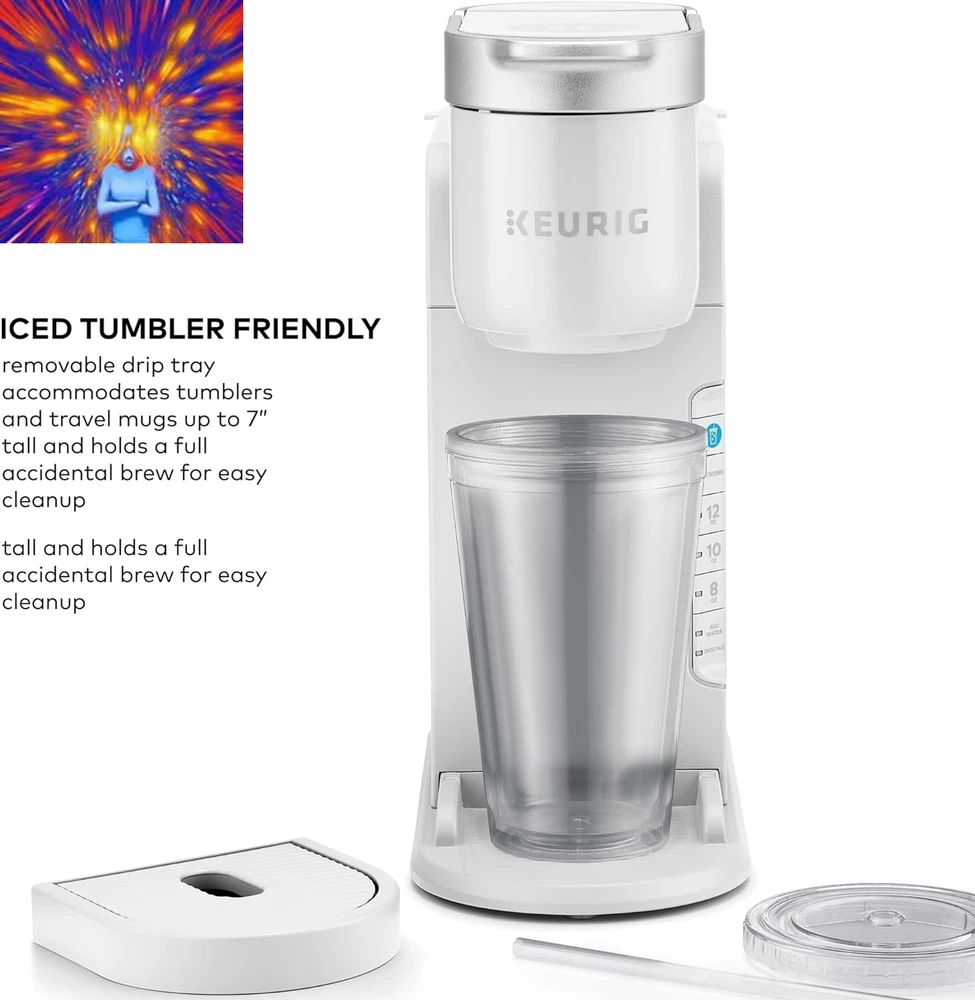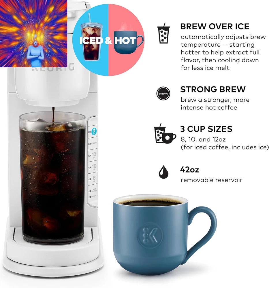 Store New Arrivals Add to Favorite View Feedback Contact K-Iced Coffee Maker, Single Serve K-Cup Pod Iced Coffee Maker, with Hot and Cold Coffee Capabilities, Brews Any K-Cup Pod, White Description Wattage 1000 watts Style Coffee Maker Capacity 2.6 Pounds Number of Items 1 Capacity 26 Pounds Item Weight 4.4 Pounds Wattage 1000 watts Voltage 100 Volts Style Number 5000374055 Special Feature Brew Over Ice Product Dimensions 12.9"D x 5.1"W x 12.6"H Package Type FFP Model Name K-Iced Specific Uses For Product Single-Serve, Hot & Iced Coffee Included Components No Item Weight 4.4 Pounds Human Interface Input Buttons Filter Type Reusable Special Features Brew Over Ice Exterior Finish Glossy Color White Item Dimensions D x W x H 12.9"D x 5.1"W x 12.6"H Coffee Maker Type Drip Coffee Machine Global Trade Identification Number 10611247399474 Operation Mode Fully Automatic Voltage 100 Volts Recommended Uses For Product Traveling BREW OVER ICE: Automatically adjusts brew temperature — starting hotter to help extract full flavor, then cooling down for less ice melt. STRONG BREW: Brew a stronger, more intense hot coffee. 3 CUP SIZES: 8, 10, and 12oz (for iced coffee, includes ice). 42oz REMOVABLE RESERVOIR: Allows you to brew up to 4 cups between refills. FAST & FRESH-BREWED: Delicious iced coffee and hot coffee made in minutes. ICED TUMBLER FRIENDLY: Removable drip tray accommodates tumblers and travel mugs up to 7” tall and holds a full accidental brew for easy cleanup. ENERGY EFFICIENT: Auto off feature turns off your coffee maker 5 minutes after the last brew, helping to save energy. COMPATIBLE WITH THE MY K-CUP UNIVERSAL COFFEE FILTER: Brew using your own ground coffee (sold separately). The Keurig® K-Iced™ coffee maker. Enjoy refreshingly delicious iced coffee and full-flavored hot coffee from one multitalented coffee maker. Brew the perfect coffee for any craving, mood, or mouthwatering moment. Always easy, always right. It’s all in the, blue Brew Over Ice button. One push, and the K-Iced™ coffee maker automatically adjusts the brew temperature, starting hotter to extract full flavor, then cooling down to minimize ice melt. All for a vibrant, balanced iced coffee that never tastes watered down. The K-Iced™ coffee maker also brews the same full-flavored hot coffee that you love. And if you want a stronger cup, the Strong Brew setting gives your hot coffee a bolder, more intense taste. Whether you’re brewing iced or hot, choose from 3 cup sizes — 8, 10, and 12oz (for iced coffee, including ice). And the 42oz removable reservoir lets you enjoy multiple deliciously refreshing cups between refills. ABOUT US We offer the best prices around on high quality products. Our E-store includes media such as books, movies, music and games while offering electronics, toys, sporting apparel, clothing, tools, general home, garden items and more. SHIPPING We are always working hard to ensure your package arrives as soon as possible. Please understand that some factors like weather, high postal traffic, and the performance of shipping companies are outside of our control. We offer free shipping to the lower 48 states and ship within 2 business days of payment, usually sooner. We do not accept P.O. Boxes. Please provide a physical address. For shipping outside of the continental USA, we only use eBay's Global Shipping Program.The item is shipped to KY and then sent to the rest of the world. International customers are responsible for all duties and taxes. Continue to check out in order to calculate costs for shipping the item to your country. Messages regarding eBay's Global Shipping Program MUST be directed at eBay EXCLUSIVELY. RETURNS We offer a 30-Day Return Policy on items which you are not completely satisfied with. You have the option for a full-refund or an exchange of the item. No returns are available on items shipped outside of the USA. PAYMENT We accept PayPal. CONTACT US This page content is yet to come Please ad us to your favorite seller and visit again later Thank You CUSTOMER SATISFACTION We try our very best to make sure every customer is completely satisfied. If there's a problem, message us! We're happy to help. WE ACCEPT