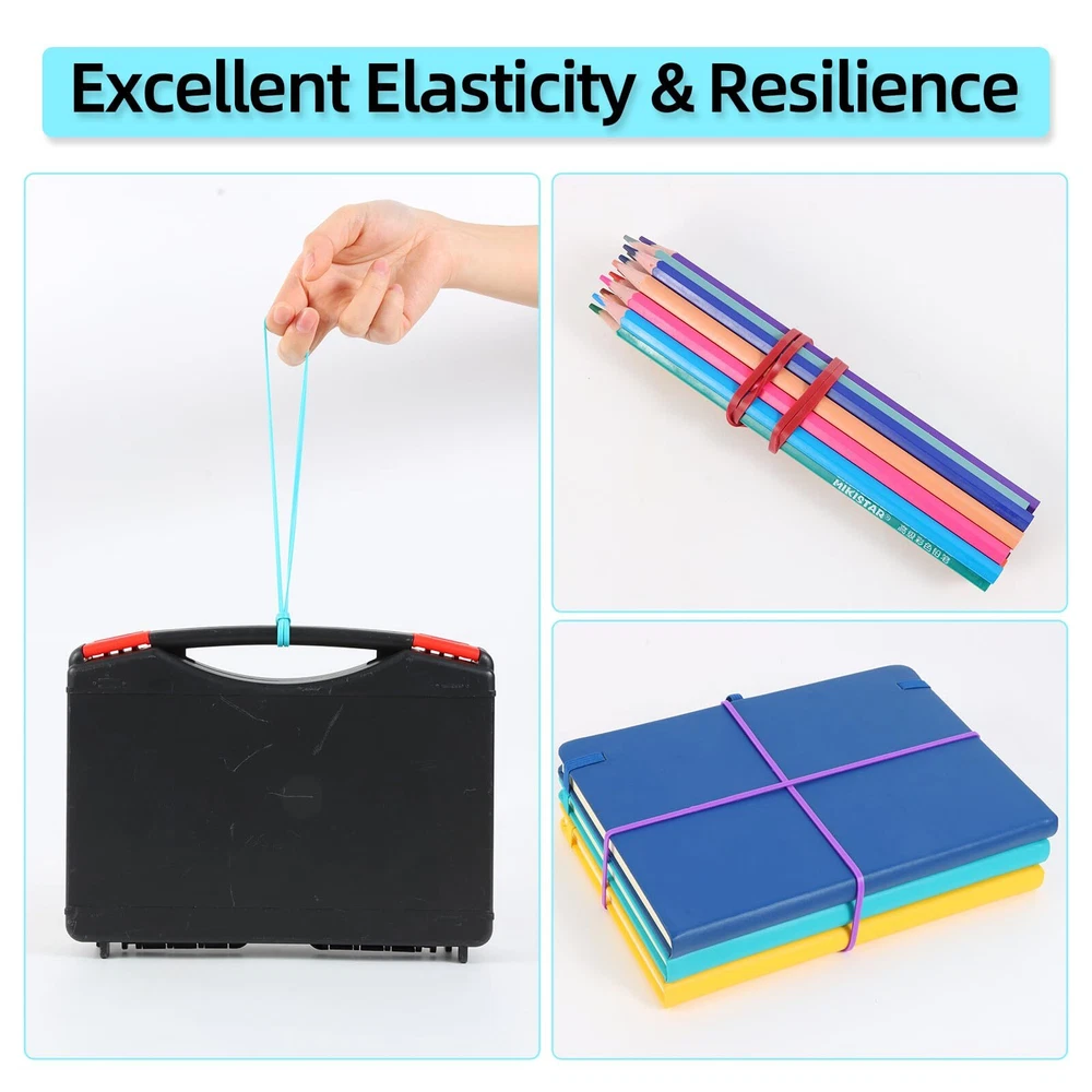 KJAHLAL Large Rubber Bands, 120 Pcs Long Rubber Bands Specification Quantity: 120 Color: Red, Green, Blue, Purple Size:Flat length is approx, 7 inches, 0.125inch in width and 0.05 inch in thickness Wide Application: can be applied to bundle office supplies, trash cans, folders,vegetables,cartons,furniture, DIY art craft in daily life, your imagination can create lots ofother art crafts. Quantity&Color: The package includes about 120 blue,purple,green and red rubber bands ,Can help you classify different documents, different styles, different products. Size: measuring 7×1/8 inches,these oversized rubber bands can stretch up to four times the length of their base,You can even wrap a rubber band around the box or box to prevent it from opening when moving or transporting. Material:Made of high quality rubber,durable and not easy to break,can be reused, help avoid strains associated with repetitive binding, alternative to twine and box strapping. Mutiple use scenarios:The big rubber bands are light in weight,very easy to carry and store,weather in the office,at home,or on the road, it can be easily carried and used for a variety of scenarios can be used to bundle office supplies,uits and vegetablestrash cans, folders, furniture, DIY art craft in daily life.sorting out your mail, documents, journals, and paperwork. After-Sale Guarantee:If for any reason you are not satisfied with your purchase, please contact us and we will do our best to resolve your issue.