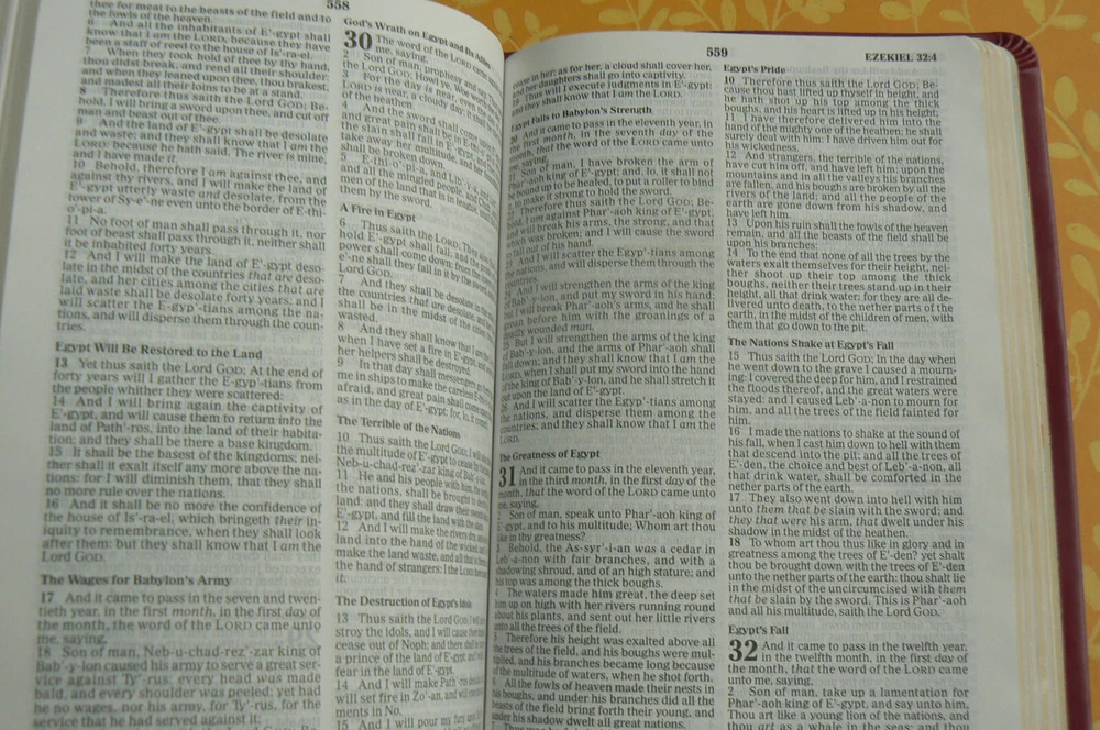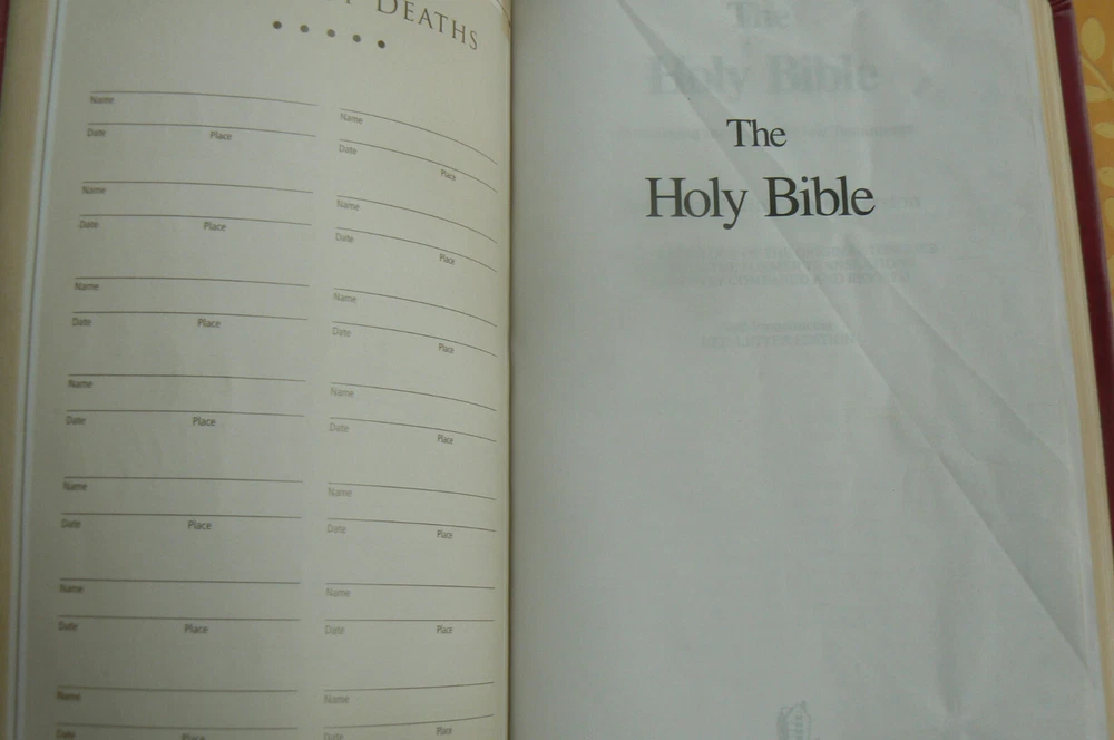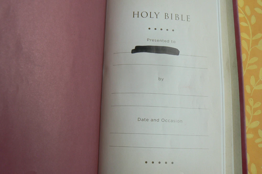 Holy Bible King James Version Red Letter Edition This leather-like ultra-slim Bible is in excellent condition! The only marking anywhere is a colored-out name on the presentation page. (Please see the seventh photo.) ALL the rest of the Bible is crisp and clean. The gilt-edged pages are very nice too. The beautiful plum-colored cover has embossed flowers that run vertically near the spine -- on the front and the back. The ribbon marker looks unused. This contains an expanded family record section, concordance, maps, and more. You won't be disappointed! I have several Christian fiction and nonfiction books (and other books/items) listed. Please take a look; I'm happy to combine shipping whenever possible. ~~~~~~~~~~~~~~~~~ I normally mail ON the day I receive payment if it's received before 1 p.m. central time, and the next day if it's later than 1. Please take a look at my other listings; I'm listing several school books (and others!) right now and am happy to combine shipping. All items coming from a smoke-free, pet-free home! Thanks so much for your time! Before leaving your feedback, if for any reason you feel I did not deserve or earn 5 stars in each category, please let me have the opportunity to make it right. I want every transaction to be 5-star worthy! Thanks so much! :)