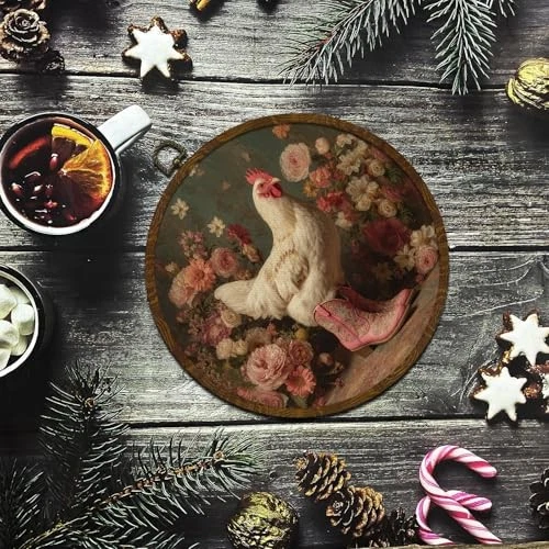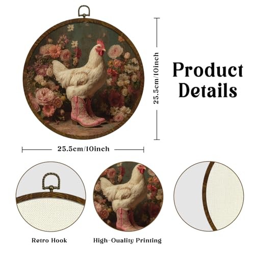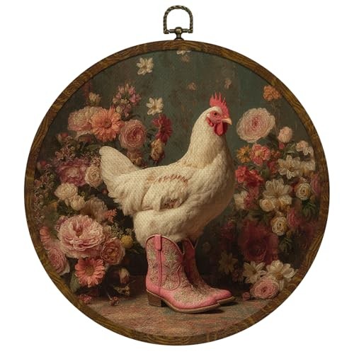 Return Policy Fast Delivery Trusted seller KLYTINK Whimsical Chicken Round Wall Art,Retro Floral Canvas Hanging Decor with Pink Cowboy Boots, Funny Farmhouse Animal Print for Kitchen, Entryway or Gift 10x10in (BY0636) Product Description [Product Details]10x10inch with round frame.The unique design is printed on high-quality canvas, and the soft matte finish enhances the retro beauty, Can be perfectly matched with various styles of walls. [Distinctive Design]Our round wall art combines stylish ,or vintage patterns and colors in a variety of themes. Whether you prefer vintage, mid-century, bohemian, modern, or farmhouse styles, you’ll easily find a piece that fits your taste and complements your space. [Reassuring Quality] The circular canvas wall art is made of high-quality canvas material and uses high-definition printing technology. The clear patterns and vivid colors can last for a sufficient period of time. [Ideal Gift]This is a thoughtful and decent gift that you can give to friends, family members, children or elders. Whether it's a birthday, Valentine's Day, Christmas, Mother's Day, Father's Day or a graduation season gift for children, it's all very suitable. It is also an indispensable seasonal decoration. [Easy to Hang] This round wall decor comes with metal hooks, making it easy to hang.It can also be directly placed on the shelf for display.Suitable for wall decoration in living rooms, bedrooms, bathrooms, kitchens, dining rooms,office,entryways,kids’ rooms, playrooms, nurseries,or galleries walls. Shipping Returns Payment Shipping Shipping is FREE to all addresses other than APO/PO boxes in the lower 48 states. All our stock ships from US-based warehouses. Shipped via USPS or UPS (depending on location and package weight) Unless stated otherwise, all orders will ship within 24-72 hours of your payment being processed. Check our feedback to see the great reviews of FAST shipping we offer. Returns Seller does not accept returns Payment We currently accept payment via eBay managed payments only. Once payment is cleared, we will dispatch your shipment within 1-3 business days. Please refer to the "Shipping" tab for more information regarding shipping speed to your destination.