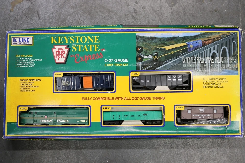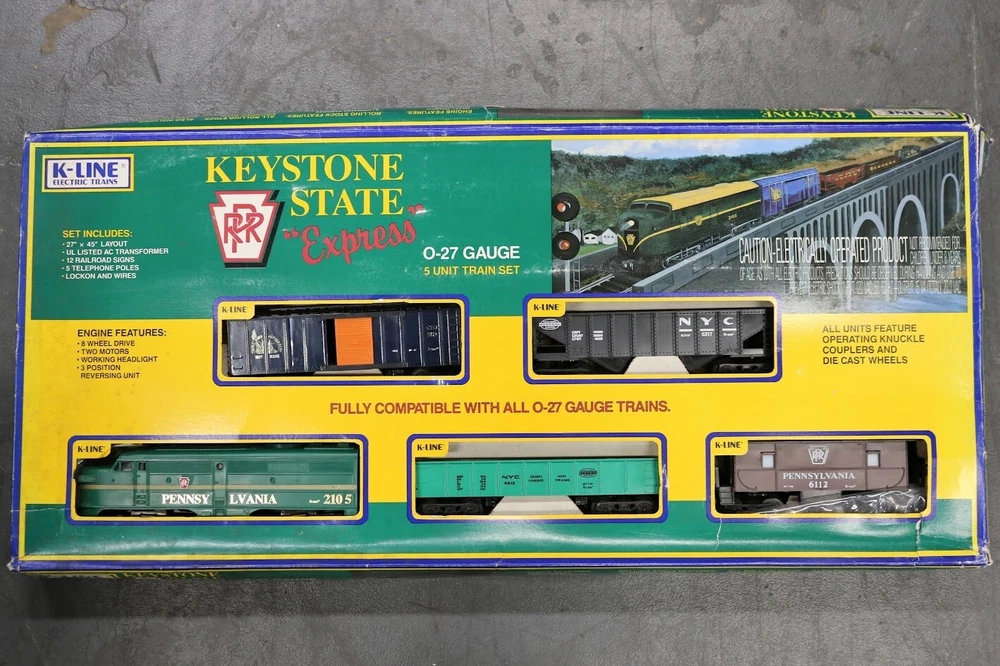 K Line Keystone State Express 0 0-27 Gauge Diesel Engine Train Set No Transformer, Layout Pieces or anything mention on the box. What you see is what you get PLEASE READ BEFORE PURCHASING Condition: Please carefully review all photos for details on the item's condition. Photos are part of the description, and any notable flaws will be highlighted. Combined Shipping: If purchasing multiple items, please request a revised invoice before paying to ensure accurate combined shipping costs. eBay's system may not calculate this correctly, which could lead to overcharges. Lighting Disclaimer: Photos are taken under bright lighting to highlight details, which may cause slight variations in color or hue depending on your lighting. If you need additional photos (e.g., in natural light) or more details, please ask before purchasing. As-Is Items: Items marked "AS-IS" are untested and sold at a discount. These items may work but could also be better suited for parts. Refunds will cover only the item price, not shipping. What’s Included: Only the items shown in the photos and described in the listing are included in the purchase. We strive to describe items thoroughly and provide clear photos. If you have any questions or concerns not addressed in the listing, feel free to ask before purchasing. Thank you for shopping with us!