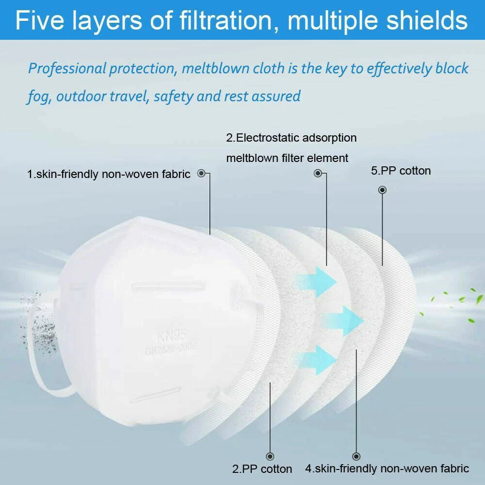 KN95 Protective Face Mask -100 PC- 5-Layer PM2.5 95% Disposable Respirator Cover