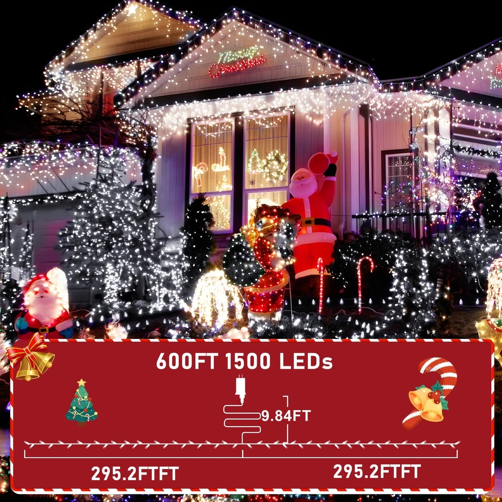 KNONEW 600ft 1500 LED String Lights Outdoor Christmas Lights 8 Modes & Timer ...