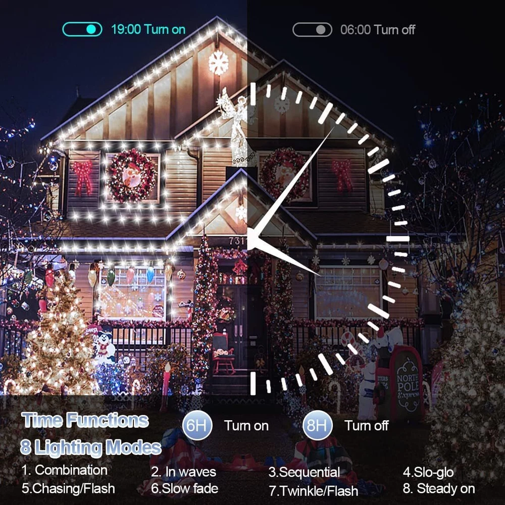 403FT Super Long and 1000LEDs Super Bright: The Green Wire Christmas lights length is 403ft with 1000LEDs beads, and 9.84ft plug cord, which can be enough to wrap around and decorate a 15ft Christmas tree, no need to extend, moreover green wire will blend well with the tree. Upgraded higher brightness LED bulbs make each LED beads shine 360 degrees but non-dazzling, to create a cozy, romantic and festive atmosphere for Christmas, Party, Wedding. As a holiday decoration, KNONEW Christmas string lights is really Excellent Value. Smart Christmas String Lights: Including 1 steady on +7 Variable Lighting Modes(Combination/In Waves/Sequential/Slo-Glo/Chasing/Slow Fade/Flash/Steady On). Stay away from single lighting mode! Whether you are hosting a lively gathering or enjoying a quiet evening under the stars, variable Lighting Modes allows you to set the perfect mood for any occasion. Safer and More Efficient: Christmas LED Lights is powered by 29V low voltage output Plug with UL certified, and Low-temp LED bulbs ensure no overheat after long time using. Very safety for kids and pets even can hold it or hang it on their bodies. The LED beads not only do they consume a fraction of the energy , but they also boast a longer lifespan, saving your both energy and money in the long run. It's a win-win situation that combines eco-friendliness with cost-effectiveness. Indoor Outdoor Used: Outdoor lights have IP44 waterproof rated, you can trust they hold up against stormy days, and provide reliable performance season after season. Kindly note the plug needs to be protected from water. Perfect for indoor and outdoor use, hang it into your yard,garden,patio,bushes,doorways,and bedroom,classroom,curtain,ceiling. Making you feel relaxed after exhausting work all day,and enjoy the peaceful moments at night. 4 Adjustable Brightness Levels and 3 Timer Function: Built-in timing and memory chip, no longer have to manually turn it on and off every day, and it will save your last mode setting or timer setting without reset. Saving your time. 100%-75%-50%-25% 4 level brightness adjustable, you can choose the brightness that makes you feel most comfortable. Super easy to install, plug-in and play, then hang it or place it anywhere you need. It`s a great gift for your family and friends.