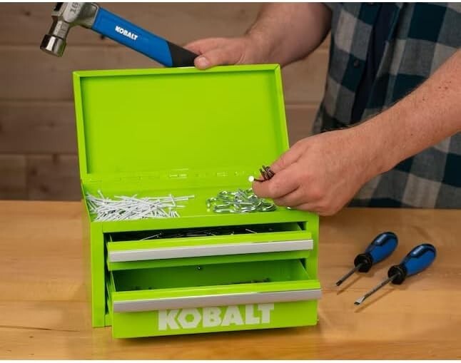 Introducing the KOBALT portable storage system constructed with impact-resistant polymers to handle any environment. The KOBALT mini tool box holds up to 5 lbs per drawer to keep all your equipment organized. The tool box is compatible with the full line of Kobalt modular storage boxes and accessories. LIME GREEN COLOR....Hard to find! Real mini size Durable powder coated finish Aluminum drawer trim, friction slides Magnetic drawer locking mechanism Shipping: All items will be shipped out using UPS. Generally items are shipped either the same or next business day. If for some reason you need to ensure expedited shipping, please let us know asap. Unfortunately we've been experiencing terrible issues when using the USPS and we will not use them unless absolutely necessary. Feedback: We strive to give buyers the best experience possible. If you have an issue with any part of your purchase, please contact us directly so that we can hopefully solve the issue. Returns: Returns allowed only within 14 days with the following conditions: - Item condition must be EXACTLY as received. If it is in a sealed package, then it must be sealed when returned. All returns will be subject to a 20% restocking fee. If the item condition is not in original, resellable condition, an additional 20% fee will be deducted from your refund. Buyer is responsible for all shipping charges. - There are no returns on USED or OPEN BOX items! - Items pictured are always exact items you will receive, unless otherwise stated. Please review pictures to judge condition and or any issues for yourself. I would encourage you to please message us with any questions should you have any conce rns PRIOR to purchasing. Thank you for your patronage!
