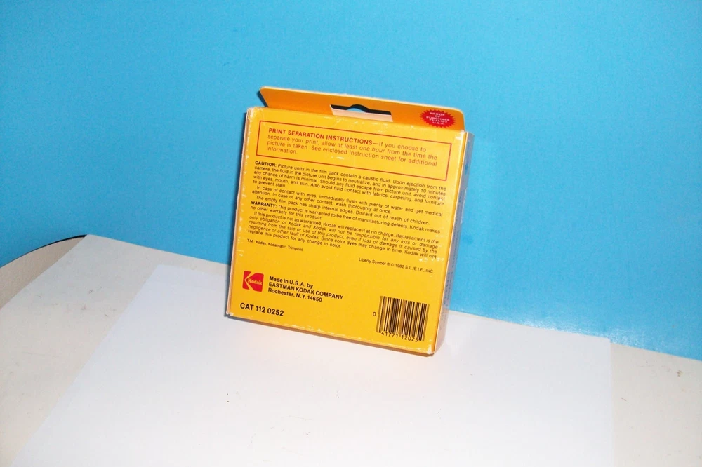 Kodak Instant Color Film with Trimprint feature. It's a "Take-Two Pack". 20 total pictures. Item no. PR144-10-2. The box is unopened. Use by date is 10/1986. The box shows normal wear from handling/age. Payment is due within 5 days.