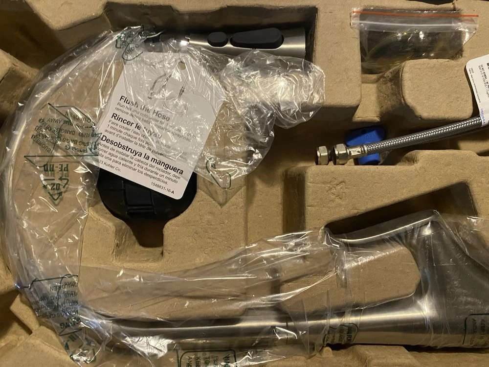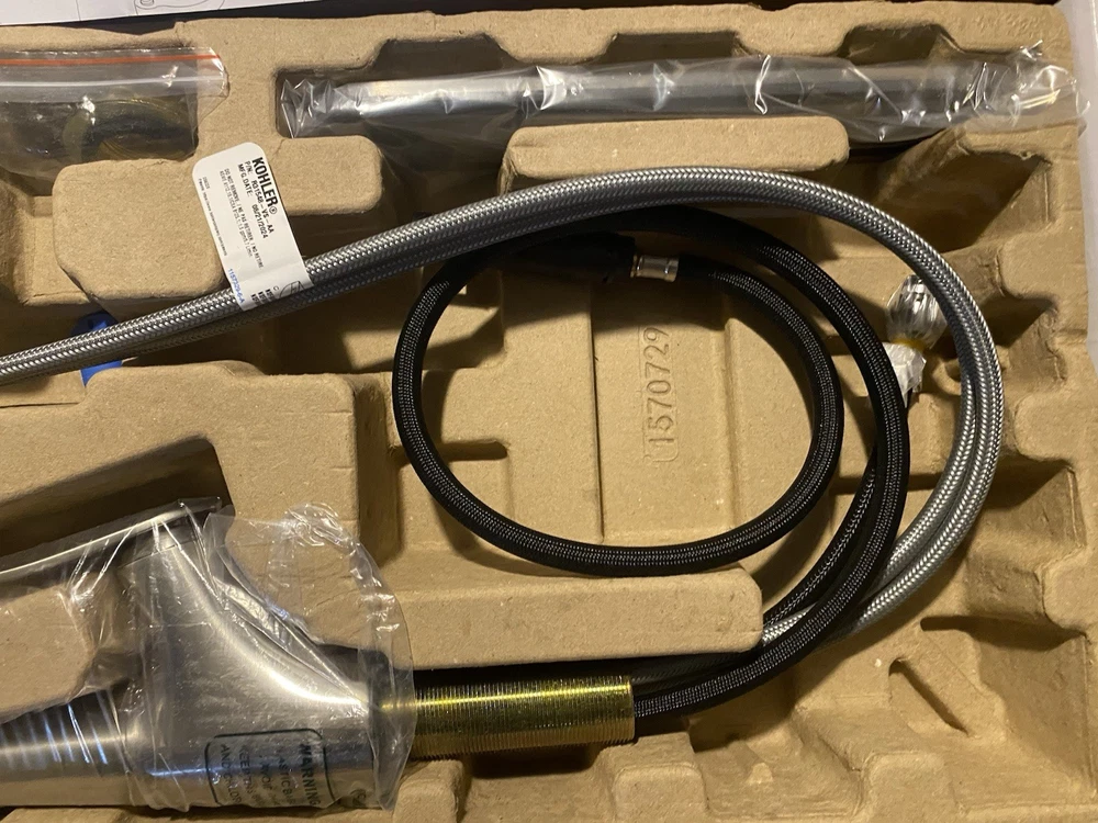 KOHLER “Leto” stainless steel colored pull-down kitchen faucet for Sale! This is in great condition and comes with everything still in the box ready to be installed! This model retails for over 200$ in stores or online, save your money and shop with me today!! Check my page out NOW for more DEALS!!