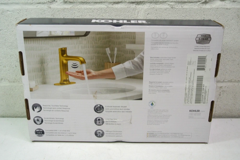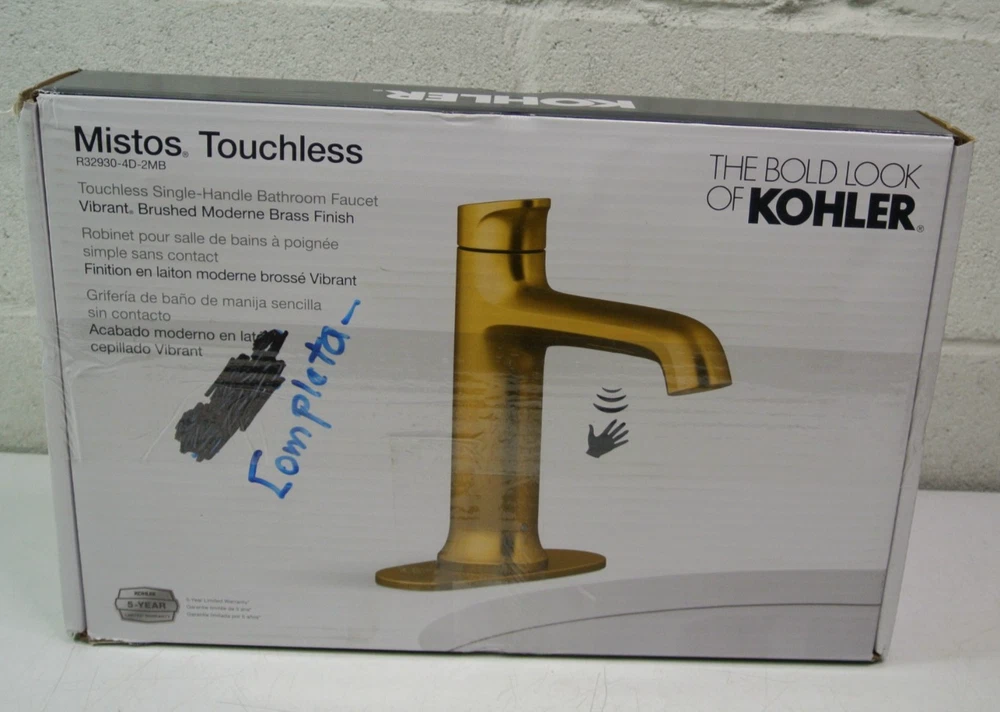 Item available today is the, KOHLER Mistos Battery Powered Touchless Bathroom Faucet in Brushed Moderne Brass . This is a new bathroom faucet in opened packaging . Ready to use. Please see photos for more details. Items in photos are what come with the listing. Thank you for shopping small business. Terms of Sale Listing is for item and/or accessories shown in photos only. Some states may require a tax be charged at the time of checkout, this is eBay automated. We ship and answer questions Mon-Fri 8am-4pm EST . We stand behind our products and would be happy to assist you if you experience an issue. Please contact us first. We ship to your confirmed PayPal address only using UPS or USPS. Items over $200 may require signature upon delivery. There are no returns on items sold for parts. A RESTOCK FEE UP TO 20% MAY BE CHARGED FOR RETURNS THAT ARE NOT OF FAULT OF THE SELLER OR ITEMS NOT RETURNED IN THE SAME CONDITION. Thank you for shopping small business! Shipping Information Only ships within the Continental United States with one business day processing time. LM 11 /20/2025 ( D8 )
