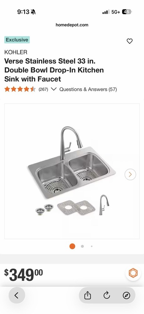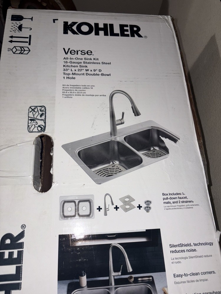 The KOHLER Verse Stainless Steel 33 in. Double Bowl Drop-In Kitchen Sink with Faucet is a stylish and functional addition to any kitchen. With a sleek silver color and durable metal construction, this sink features two inner bowls measuring 15 inches in width, 14 inches in length, and 9 inches in height. The drop-in/top mount design makes installation easy, while the brand reputation of Kohler ensures quality and reliability. Ideal for a kitchen setting, this sink offers both practicality and aesthetic appeal.