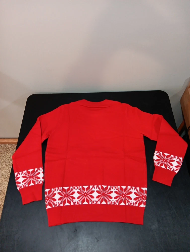 New with tags. Women's size Large ugly Christmas sweater. Measurements are also pictured in the listing. Thanks for looking. Fast, free shipping Chest from armpit to armpit: 20" Top of the shoulder to sweater bottom: 25"