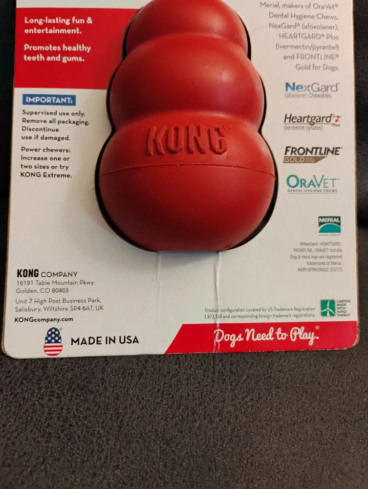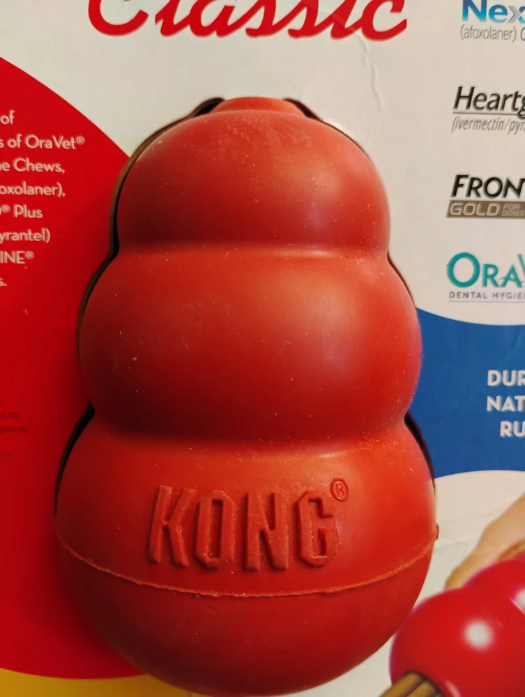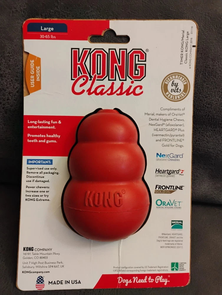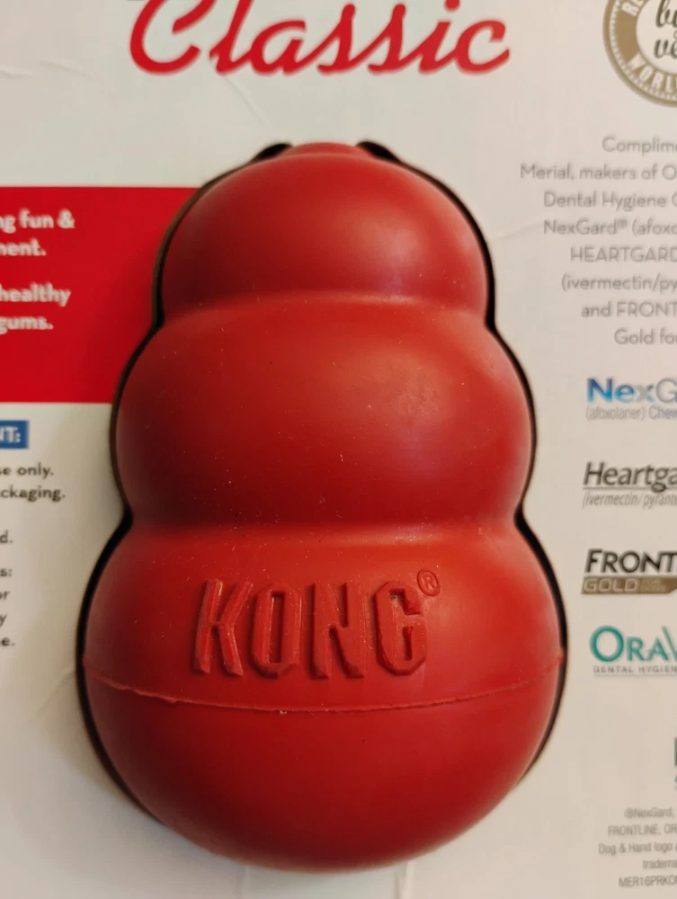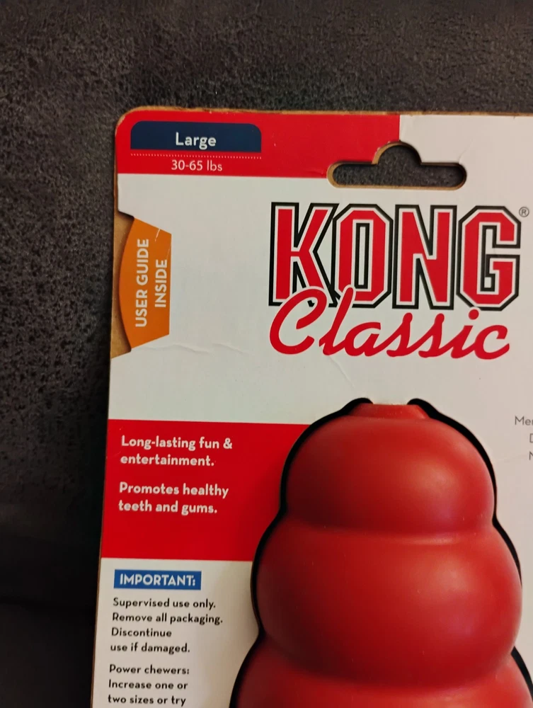 KONG Classic Dog Rubber Chew Toy - Large, Red, The packaging has some sines of wear, as pictured. All items are sold as pictured. Thanks for your time and interest 🙂☺️