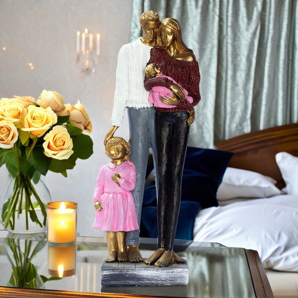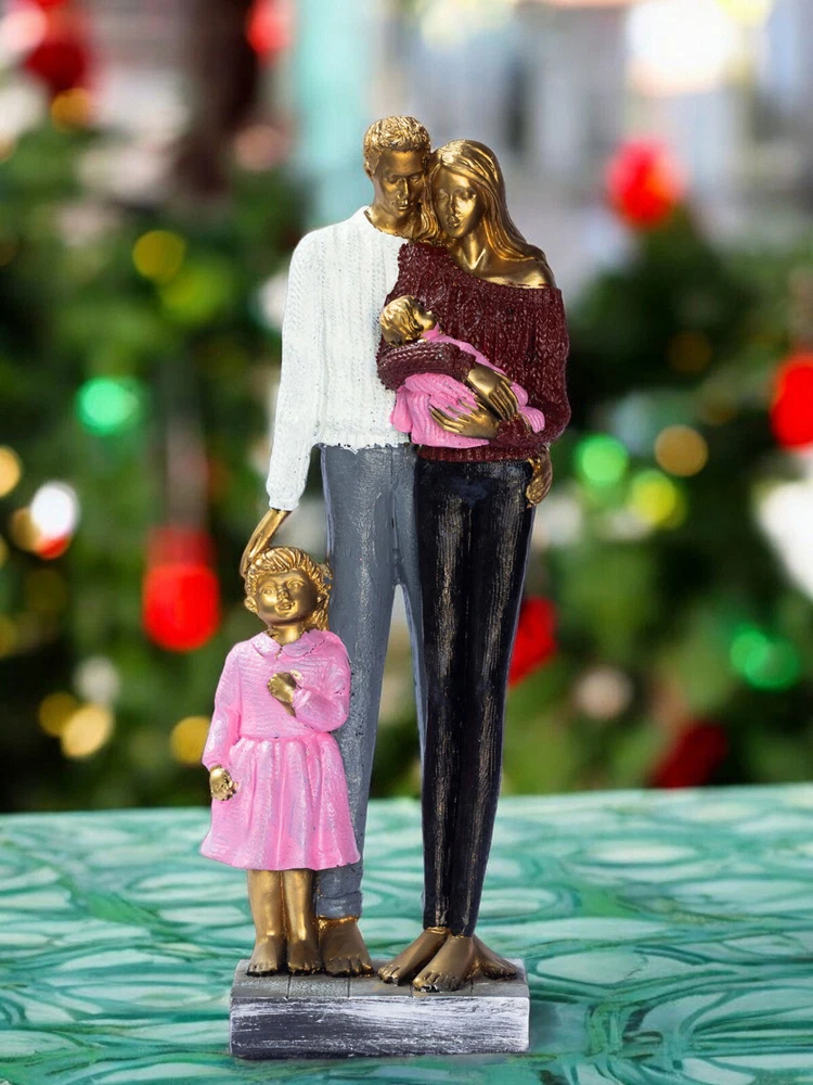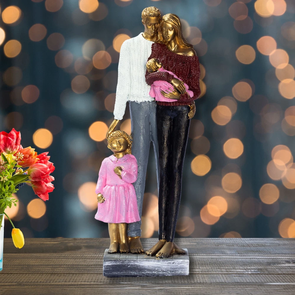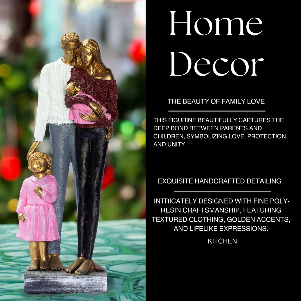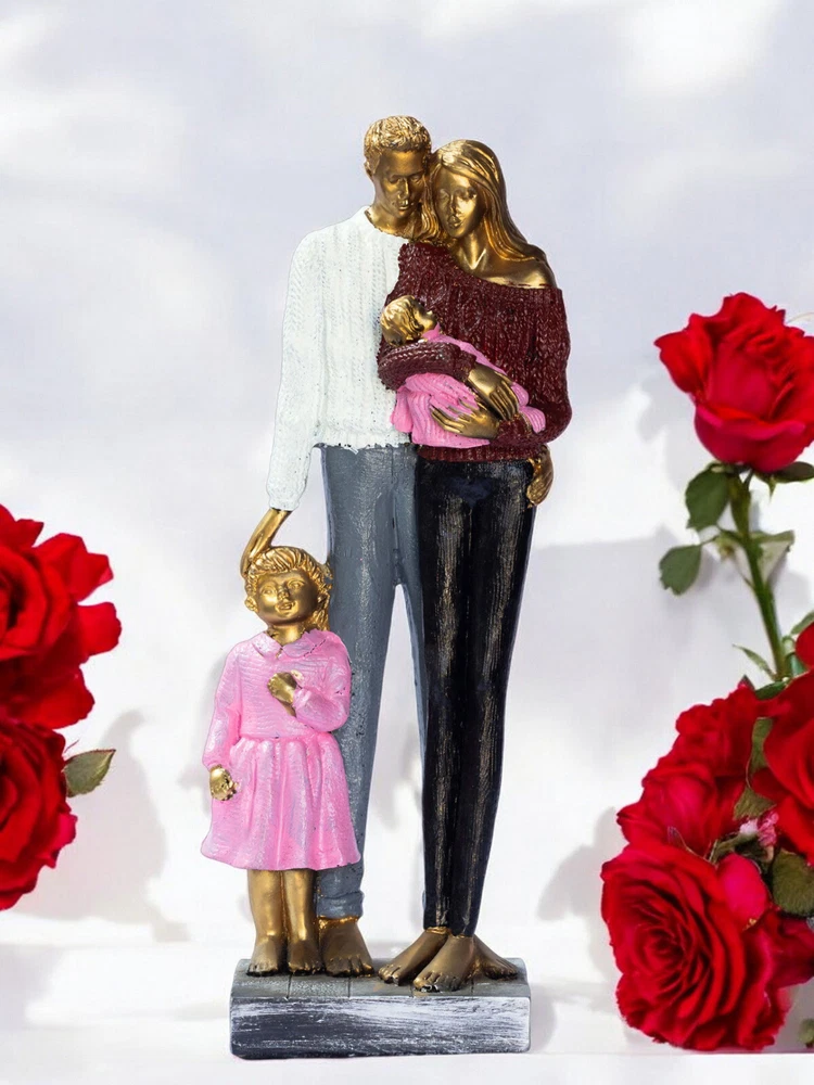 Elegant Poly-Resin Family Figurine Showpiece Celebrate the beauty of family love and togetherness with this elegant poly-resin family figurine, a heartwarming sculpture that symbolizes the deep bond between parents and children. Featuring intricately crafted details, this decorative piece showcases a loving embrace between parents and their children, capturing the essence of warmth, care, and protection. Made from premium-quality poly-resin, this statue is designed for durability and long-lasting charm. The golden accents, textured clothing, and artistic craftsmanship enhance its elegance, making it an ideal centerpiece for your home. Whether displayed on a fireplace mantel, bedside table, office desk, or bookshelf, this figurine adds a sentimental and cozy touch to any space. A perfect gift for family members and loved ones, this figurine is ideal for Mother’s Day, Father’s Day, anniversaries, housewarming, baby showers, or as a wedding gift. It serves as a symbol of unbreakable family bonds, reminding us of the importance of love and connection. Bring warmth, sentiment, and elegance to your home with this stunning family sculpture—a timeless keepsake that celebrates the power of love and unity. The Beauty of Family Love: This figurine beautifully captures the deep bond between parents and children, symbolizing love, protection, and unity. A Timeless Gift for Loved Ones: A heartfelt present for Mother’s Day, Father’s Day, anniversaries, housewarming, baby showers, or weddings. Versatile Home Décor Accent: Perfect for living room tabletop, fireplace mantels, bookshelves, bedside tables, and office desks, enhancing any space with warmth and sentimentality.