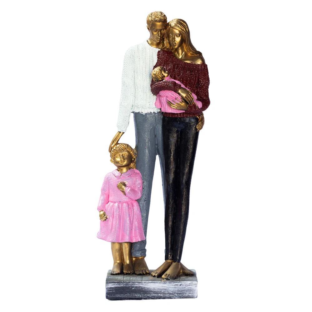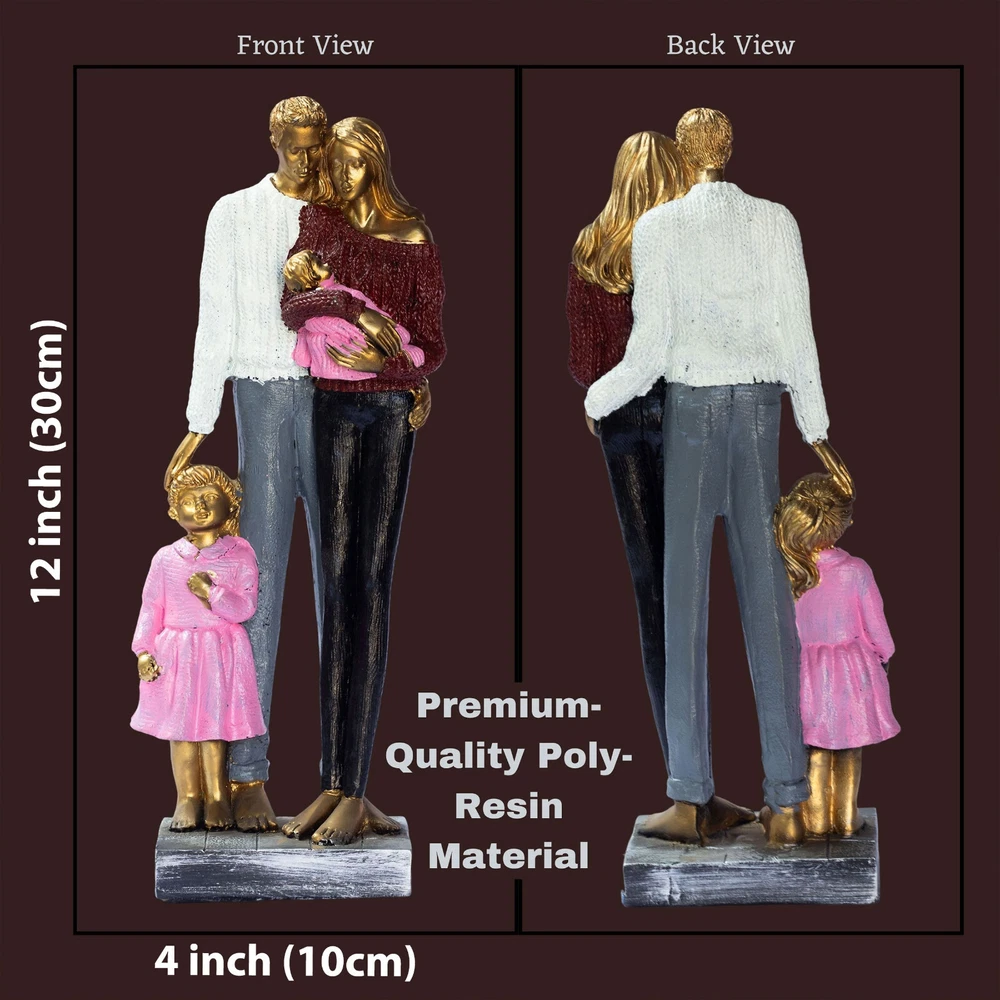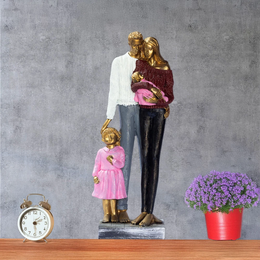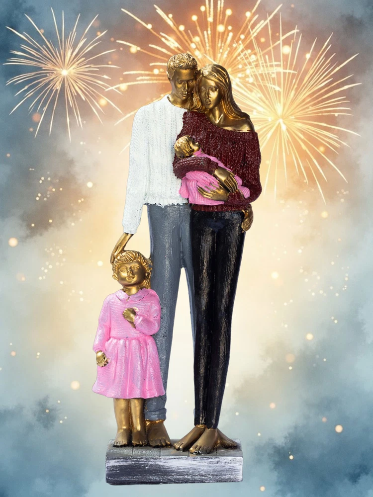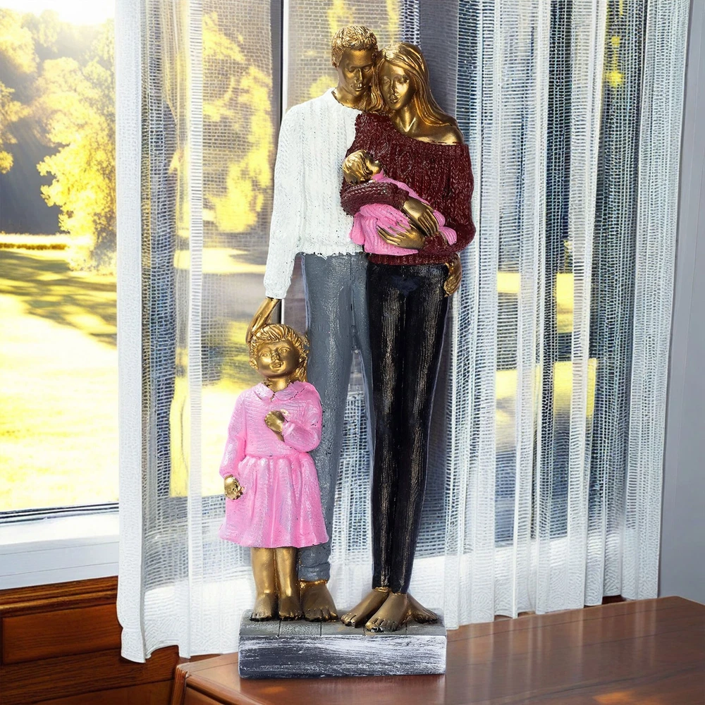 Elegant Poly-Resin Family Figurine Showpiece Celebrate the beauty of family love and togetherness with this elegant poly-resin family figurine, a heartwarming sculpture that symbolizes the deep bond between parents and children. Featuring intricately crafted details, this decorative piece showcases a loving embrace between parents and their children, capturing the essence of warmth, care, and protection. Made from premium-quality poly-resin, this statue is designed for durability and long-lasting charm. The golden accents, textured clothing, and artistic craftsmanship enhance its elegance, making it an ideal centerpiece for your home. Whether displayed on a fireplace mantel, bedside table, office desk, or bookshelf, this figurine adds a sentimental and cozy touch to any space. A perfect gift for family members and loved ones, this figurine is ideal for Mother’s Day, Father’s Day, anniversaries, housewarming, baby showers, or as a wedding gift. It serves as a symbol of unbreakable family bonds, reminding us of the importance of love and connection. Bring warmth, sentiment, and elegance to your home with this stunning family sculpture—a timeless keepsake that celebrates the power of love and unity. The Beauty of Family Love: This figurine beautifully captures the deep bond between parents and children, symbolizing love, protection, and unity. A Timeless Gift for Loved Ones: A heartfelt present for Mother’s Day, Father’s Day, anniversaries, housewarming, baby showers, or weddings. Versatile Home Décor Accent: Perfect for living room tabletop, fireplace mantels, bookshelves, bedside tables, and office desks, enhancing any space with warmth and sentimentality.