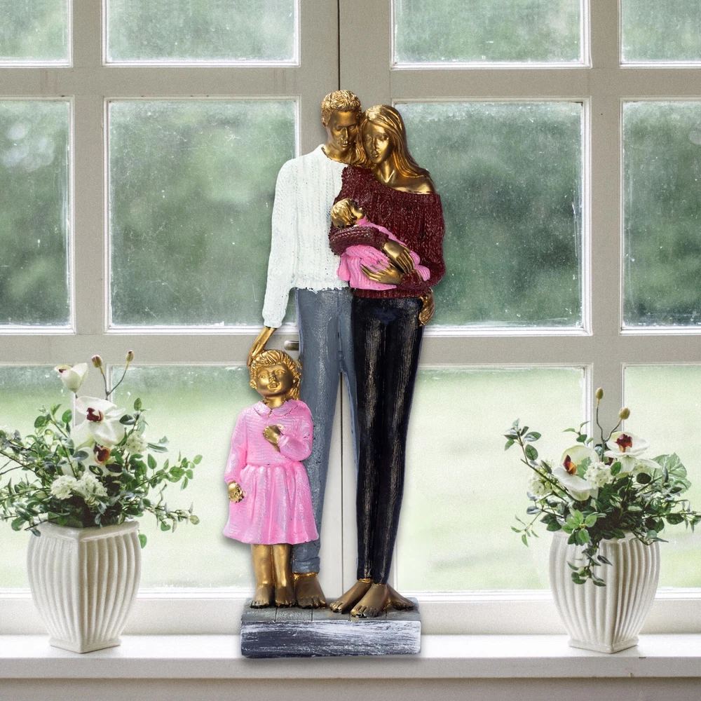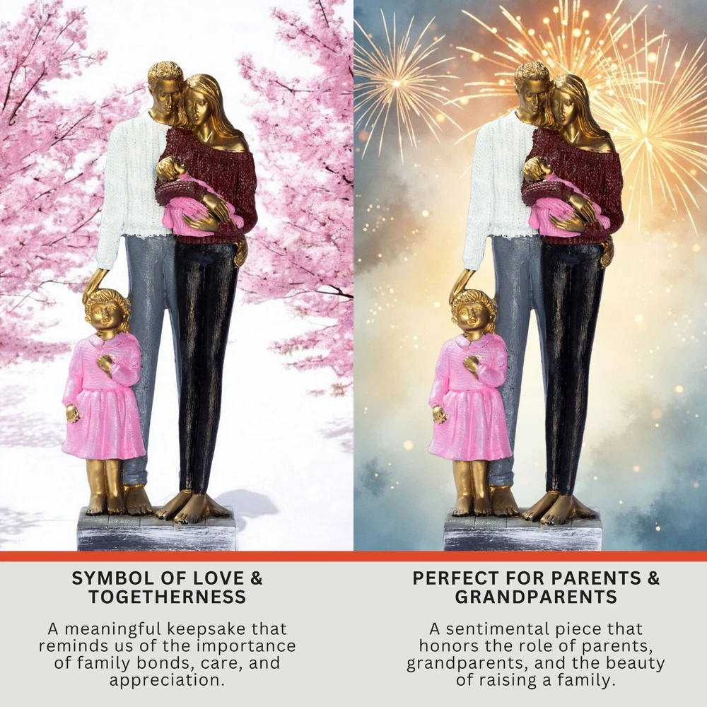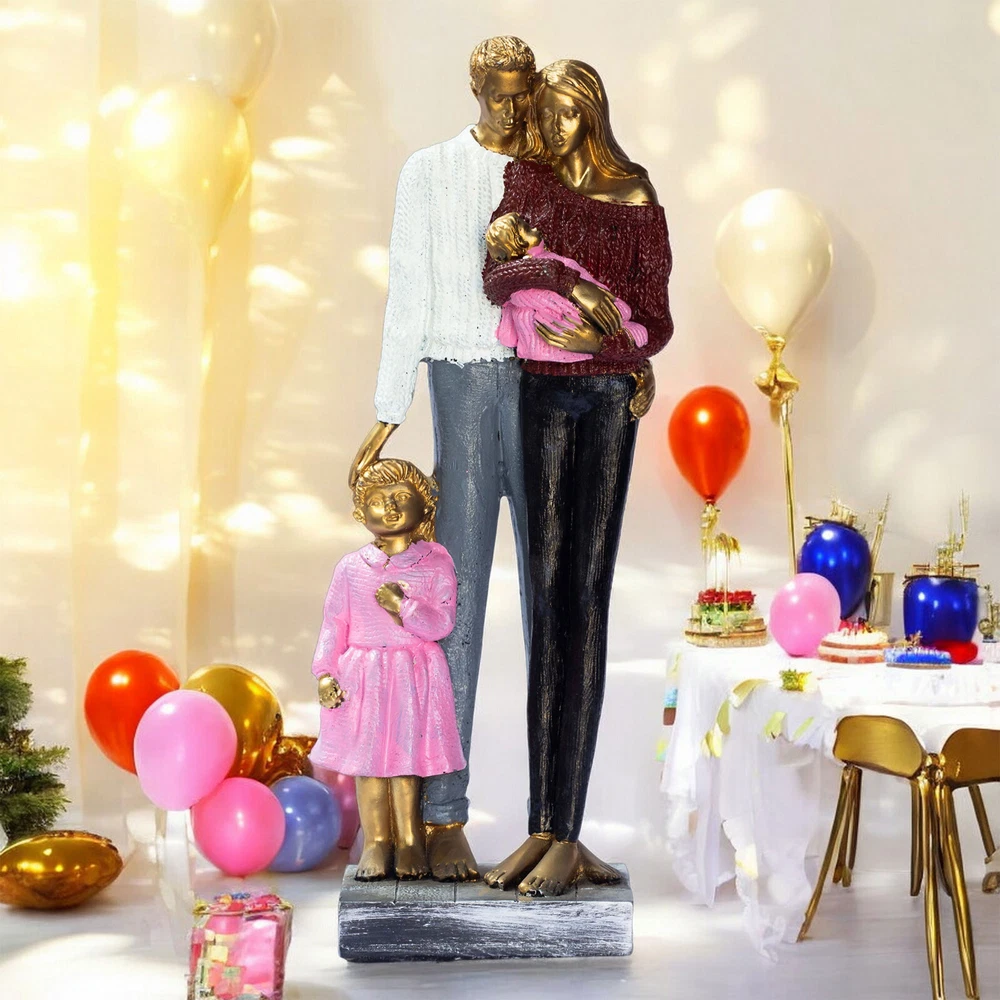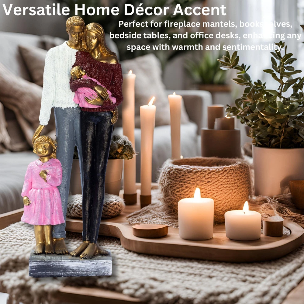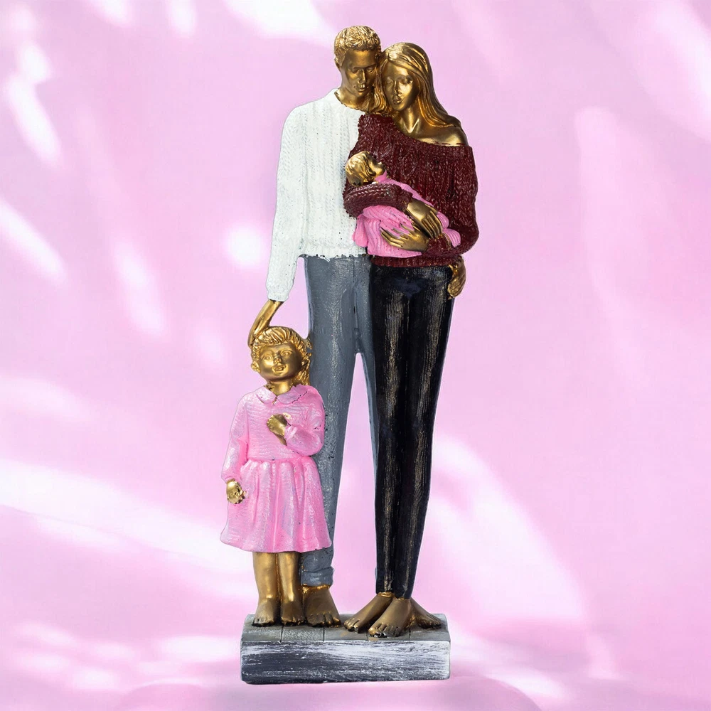 Elegant Poly-Resin Family Figurine Showpiece Celebrate the beauty of family love and togetherness with this elegant poly-resin family figurine, a heartwarming sculpture that symbolizes the deep bond between parents and children. Featuring intricately crafted details, this decorative piece showcases a loving embrace between parents and their children, capturing the essence of warmth, care, and protection. Made from premium-quality poly-resin, this statue is designed for durability and long-lasting charm. The golden accents, textured clothing, and artistic craftsmanship enhance its elegance, making it an ideal centerpiece for your home. Whether displayed on a fireplace mantel, bedside table, office desk, or bookshelf, this figurine adds a sentimental and cozy touch to any space. A perfect gift for family members and loved ones, this figurine is ideal for Mother’s Day, Father’s Day, anniversaries, housewarming, baby showers, or as a wedding gift. It serves as a symbol of unbreakable family bonds, reminding us of the importance of love and connection. Bring warmth, sentiment, and elegance to your home with this stunning family sculpture—a timeless keepsake that celebrates the power of love and unity. The Beauty of Family Love: This figurine beautifully captures the deep bond between parents and children, symbolizing love, protection, and unity. A Timeless Gift for Loved Ones: A heartfelt present for Mother’s Day, Father’s Day, anniversaries, housewarming, baby showers, or weddings. Versatile Home Décor Accent: Perfect for living room tabletop, fireplace mantels, bookshelves, bedside tables, and office desks, enhancing any space with warmth and sentimentality.