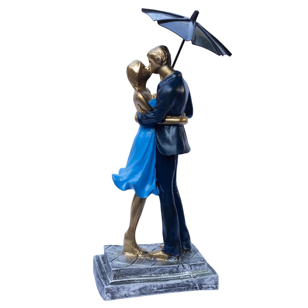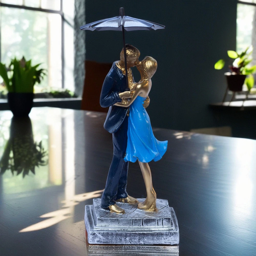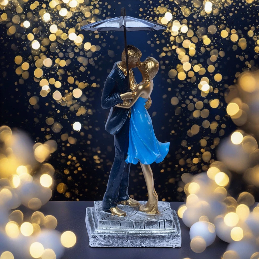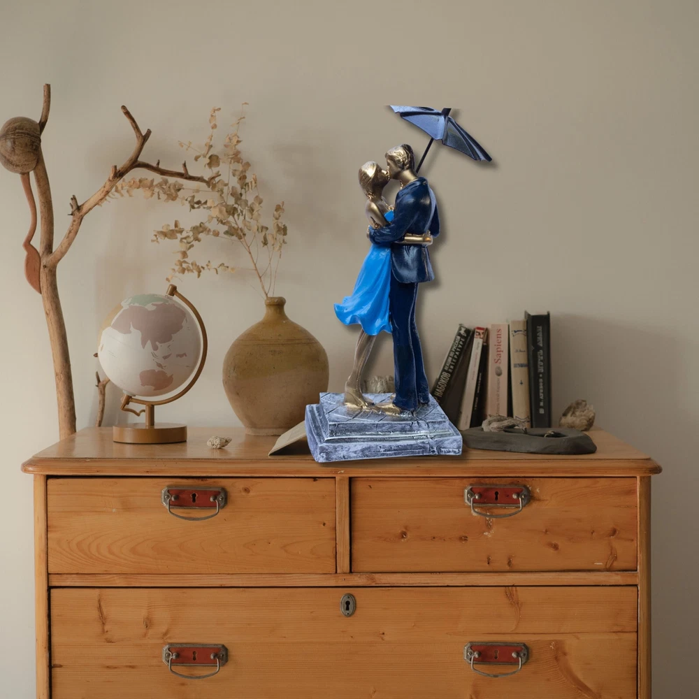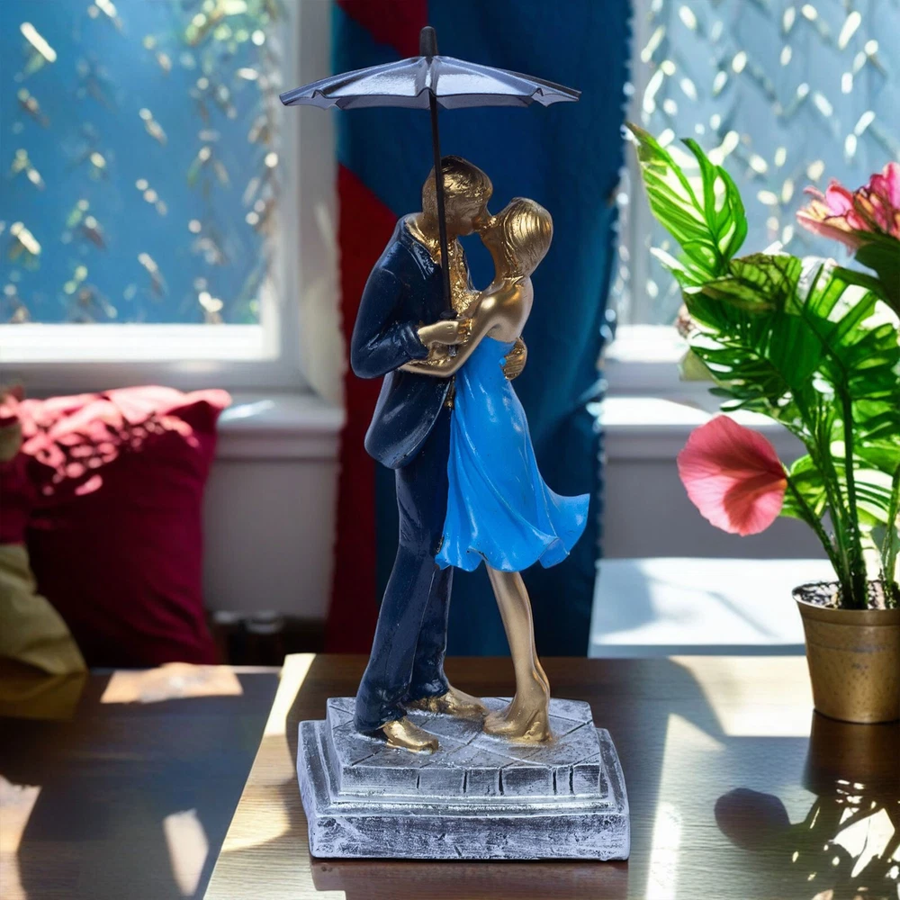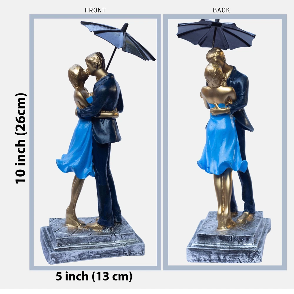 Elegant Blue Barsaat Couple Figurine – Classic Charming Romantic Love Statue for Bedroom, Living Room, Office, or Wedding Gift Add a touch of romance and elegance to your home with this blue and gold-textured couple figurine, a symbol of love and devotion. Expertly crafted from high-quality poly-resin, this stunning piece features intricate detailing, from the couple’s warm embrace to the delicate textures on their attire. The smooth, golden finish enhances its luxurious appeal, making it a timeless decorative piece that fits seamlessly into any room. Perfect as a Valentine’s Day gift, anniversary present, wedding keepsake, or home décor accent, this romantic sculpture serves as a symbol of lasting love. Place it on your bedside table, fireplace mantel, office desk, or bookshelf to create a warm and inviting atmosphere. Whether you’re looking to surprise your partner with a meaningful gift or elevate your home’s aesthetic, this couple figurine is an exquisite choice. Give the gift of love and elegance with this beautifully designed couple sculpture, a heartfelt expression of romance that will be cherished for years to come. This intricately crafted gold couple figurine captures a moment of warmth and affection, making it a beautiful addition to any home. Its elegant details and artistic expression create a timeless symbol of love, perfect for couples, anniversaries, and special occasions. Made from high-quality poly-resin, this sculpture is designed to last. The intricate detailing, golden texture, and handcrafted finish ensure it remains a beautiful decorative piece for years. No fading, no chipping—just lasting beauty! Let this couple figurine symbolize your relationship and shared memories. Whether you place it in your bedroom, entryway, or office, it serves as a beautiful keepsake that celebrates love, togetherness, and deep emotional connection.