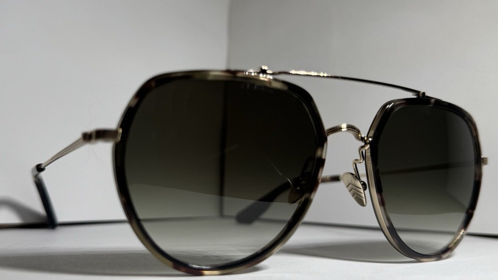 KREWE Baker 12K Titanium + Patagonian Sunglasses Modern heritage meets elevated edge. The KREWE Baker in Patagonian blends a bold aviator silhouette with refined materials, offering a fresh take on a timeless classic. Featuring oversized lenses, acetate accents, and sleek 12K gold-plated titanium hardware, this frame is designed for those who like their statement pieces to feel effortless. Handcrafted with precision, the Baker is built from a combination of glossy acetate and glossy 12K gold-plated titanium. The frame is fitted with petite integral titanium hinges for enhanced durability and lightweight wear. Adjustable nose pads and a custom temple wire ensure a personalized, secure fit. As with all KREWE eyewear, each pair is handcrafted—expect subtle variations in color and pattern that make every frame truly unique. The custom dark green gradient lenses provide 100% UVA and UVB protection, while anti-reflective and scratch-resistant coatings offer added clarity and resilience. This frame is prescription ready for those who want performance with polish. Note: This item is 100% authentic and brand new, sourced from boutique overstock and showroom pulls. Due to this, original packaging (case/box) is not included. We stand by every item we sell—if you have any questions or concerns, we’re always here to help.