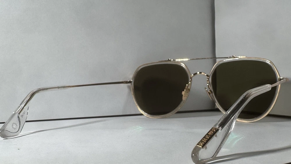 KREWE Baker 24K Titanium + Crystal Polarized Sunglasses The modern pioneer. The KREWE Baker 24K Titanium + Crystal Polarized Sunglasses check every box with their oversized aviator silhouette and refined mixed-material construction. Designed for versatility, Baker transitions seamlessly from casual to polished, making it a standout staple in any collection—and a proven celebrity favorite. Handcrafted from glossy crystal acetate and 24K gold-plated titanium hardware, this frame balances lightweight comfort with lasting durability. Adjustable nose pads and temple wires ensure a secure, personalized fit, while petite integral titanium hinges add structural strength. Each pair is handmade, resulting in subtle variations in pattern and finish that make every frame unique. The custom Grass Green Polarized lenses complete the look with striking clarity and functionality. Offering 100% UVA and UVB protection, these lenses reduce glare with polarization and feature anti-reflective and scratch-resistant coatings for everyday durability. This frame is also prescription ready, combining bold style with practical versatility. Note: This item is 100% authentic and brand new, sourced from boutique overstock and showroom pulls. Because of this, original packaging (case/box) is not included. We stand by every item we sell—if you have any concerns, we’re here to help.
