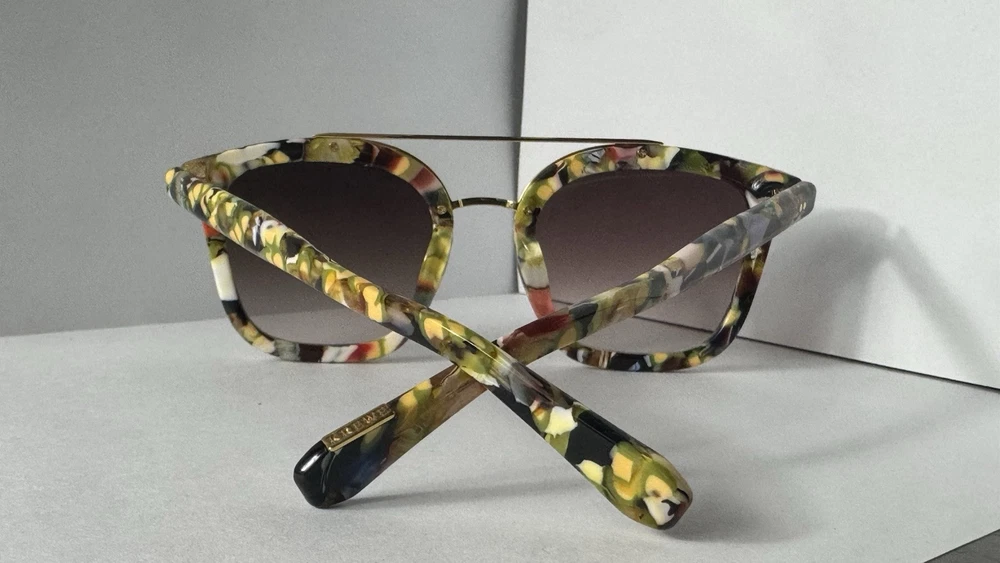 KREWE Coliseum Nylon Canary 18K Sunglasses An aviator silhouette with a KREWE twist, the KREWE Coliseum Nylon Canaryredefine bold elegance with a strikingly modern design. Featuring squared lenses with rounded corners, this frame blends classic inspiration with a contemporary edge, offering a refined yet effortless look. Borrowing elements from the iconic CLIO NYLON sunnies, the Coliseum showcases an integrated brow bar and bridge, crafted from a single piece of 18K gold-plated stainless steel that seamlessly wraps around the acetate edge for a luxurious finish. Handcrafted with precision, this frame is a seamless fusion of glossy acetate and glossy 18K gold-plated stainless steel hardware, delivering both durability and sophistication. Riveted 5-barrel hinges enhance structural integrity, while adjustable temple wires ensure a customized and secure fit. Each pair is uniquely handmade, featuring subtle variations in pattern and color that make every frame truly one of a kind. The custom Amber lenses add a bold yet refined touch to the frame’s sleek aesthetic. Designed for both style and protection, these seamless edge-to-edge nylon lenses offer 100% UVA and UVB protection while anti-reflective and scratch-resistant coatings enhance clarity and long-lasting durability. Due to the unique construction of this frame, prescription or customized lenses cannot be added Note: This item is 100% authentic and brand new, sourced from boutique overstock and showroom pulls. Because of this, original packaging (case/box) is not included. We stand by every item we sell—if you have any concerns, we’re here to help.