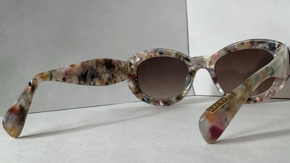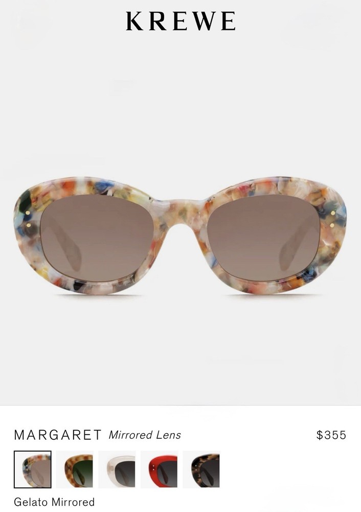 KREWE Margaret Gelato Mirrored Sunglasses Playful, bold, and effortlessly iconic. The KREWE Margaret Gelato Mirrored Sunglasses bring retro energy into the now with their sculptural bubble frame silhouette. Designed with a rounded, medium-sized shape and finished in a vibrant gelato acetate, Margaret is the kind of frame that sets trends instead of following them. Handmade from premium acetate with a high-gloss finish, the frame is lightweight on the face but heavy on personality. Riveted 5-barrel hinges and an adjustable temple wire ensure a secure, comfortable fit, while the handmade nature of each piece results in slight variations—no two pairs are exactly alike. Fitted with custom amber silver gradient mirrored lenses, Margaret offers 100% UVA and UVB protection along with anti-reflective and scratch-resistant coatings. These sunglasses are also prescription ready, offering form and function in equal measure. Note: This item is 100% authentic and brand new, sourced from boutique overstock and showroom pulls. Because of this, original packaging (case/box) is not included. Arms may require very minor adjustment depending on face shape—typical of boutique acetate frames. We stand by every item we sell—if you have any concerns, we’re here to help.